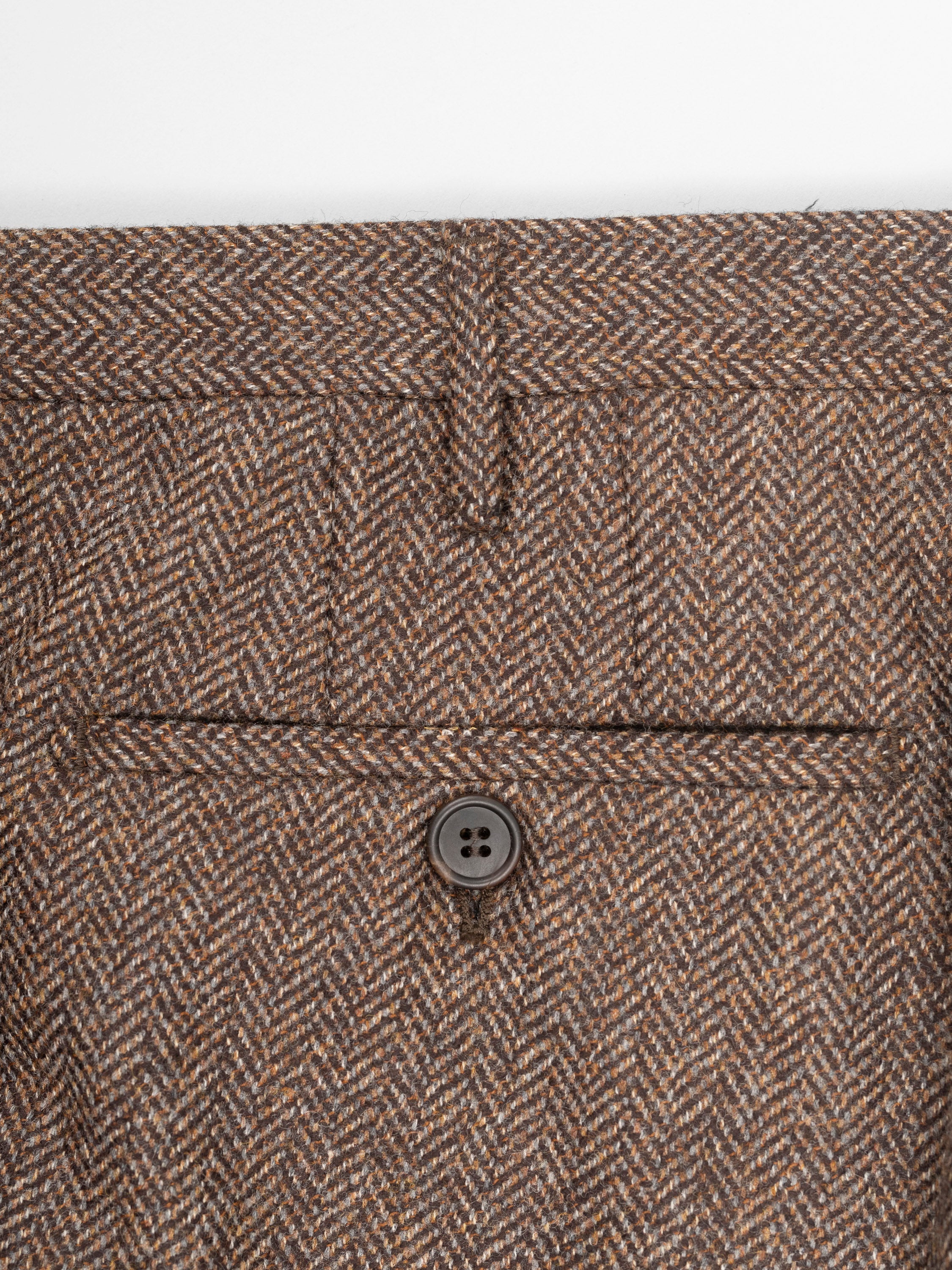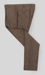 This brown herringbone pattern brown trousers will fast become a key part of your core collection. This medium-rise regular-fitting one pleat pair has been made in Italy from a heavyweight high quality wool flannel and cashmere. The tweed aspect of this fabric should not mislead you because the high quality of the wool and cashmere that make up this fabric make it very soft and pleasant to the touch.
