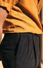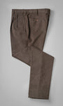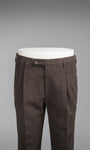 Versatile dark brown trousers will fast become a key part of your core collection. This high-rise regular-fitting double pleats pair has been made in Italy from an heavy weight high quality soft cotton. This old fashioned brushed cotton will gives you a very pleasant and warm sensation during the winter days.