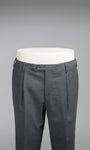 These dark grey trousers are the ideal trousers to have with you in your suitcase for a business trip or for those who don't want to worry about folds and need a trousers that look perfect for a long time. This medium-rise regular-fitting one pleat pair has been made in Italy from a four ply heavyweight high quality wool. Thanks to its special construction this high twist fabric will make you look always perfect.