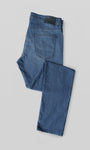 A good pair of denim is like poetry in motion. The poetry of our new blue denim trousers lies in how they feel like they've been in your rotation for years. Our signature denim blend ensures that there is no break-in period, meaning they are comfortable from the very first wear. Styled with a modern cut, low rise, and slim leg, they will serve you through the casual end of your week, all the way to aperitif at the bar.