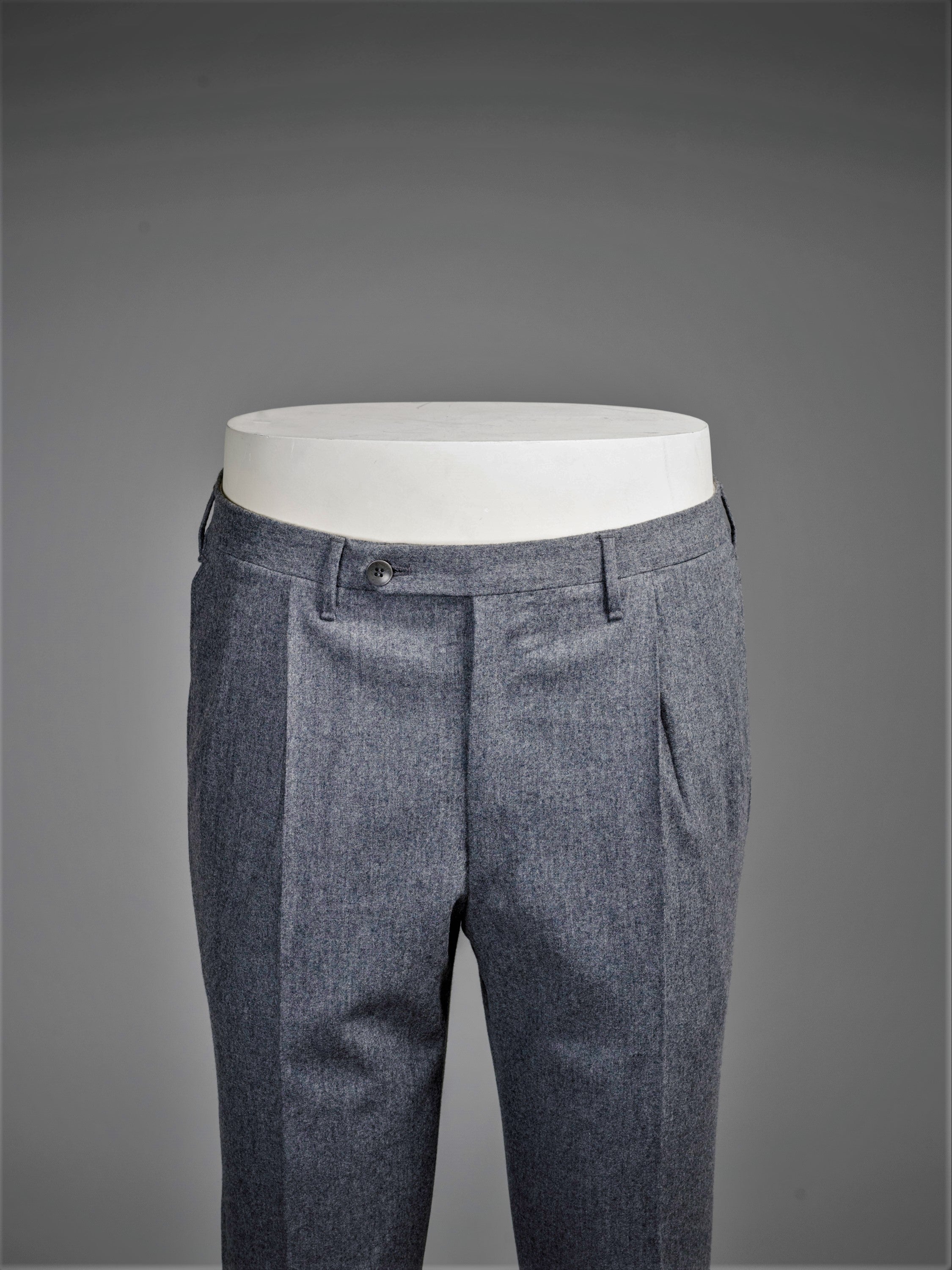 Versatile light grey trousers will fast become a key part of your core collection. This high-rise regular-fitting double pleats pair has been made in Italy from an high quality flannel wool. There is nothing better than a warm flannel during the cold days, the softness and the warmness of this trousers will makes your days more pleasant.
