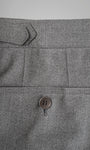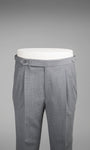 These light grey trousers are the ideal trousers to have with you in your suitcase for a business trip or for those who don't want to worry about folds and need a trousers that look perfect for a long time. This high-rise regular-fitting double pleats pair has been made in Italy from a four ply heavyweight high quality wool. The long belt and the buckle side adjusters give to this trousers a very detailed gentleman look. You can wear it withouth the belt or using suspenders for a more classic look.Thanks to its special construction this high twist fabric will make you look always perfect.