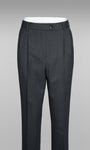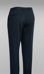 These high-rise women's trousers are crafted with two elegant pleats and are available in sophisticated dark grey and dark blue shades. The design incorporates two functional front pockets, providing convenient storage, alongside two closed back pockets that enhance the silhouette with subtle detailing. Equipped with six belt loops, these trousers allow for versatile styling with belts. The secure zip front closure paired with a button ensures a comfortable and tailored fit, making them ideal for professional or refined casual wear. Their structured cut highlights the waist, offering both comfort and a polished appearance.