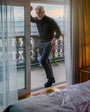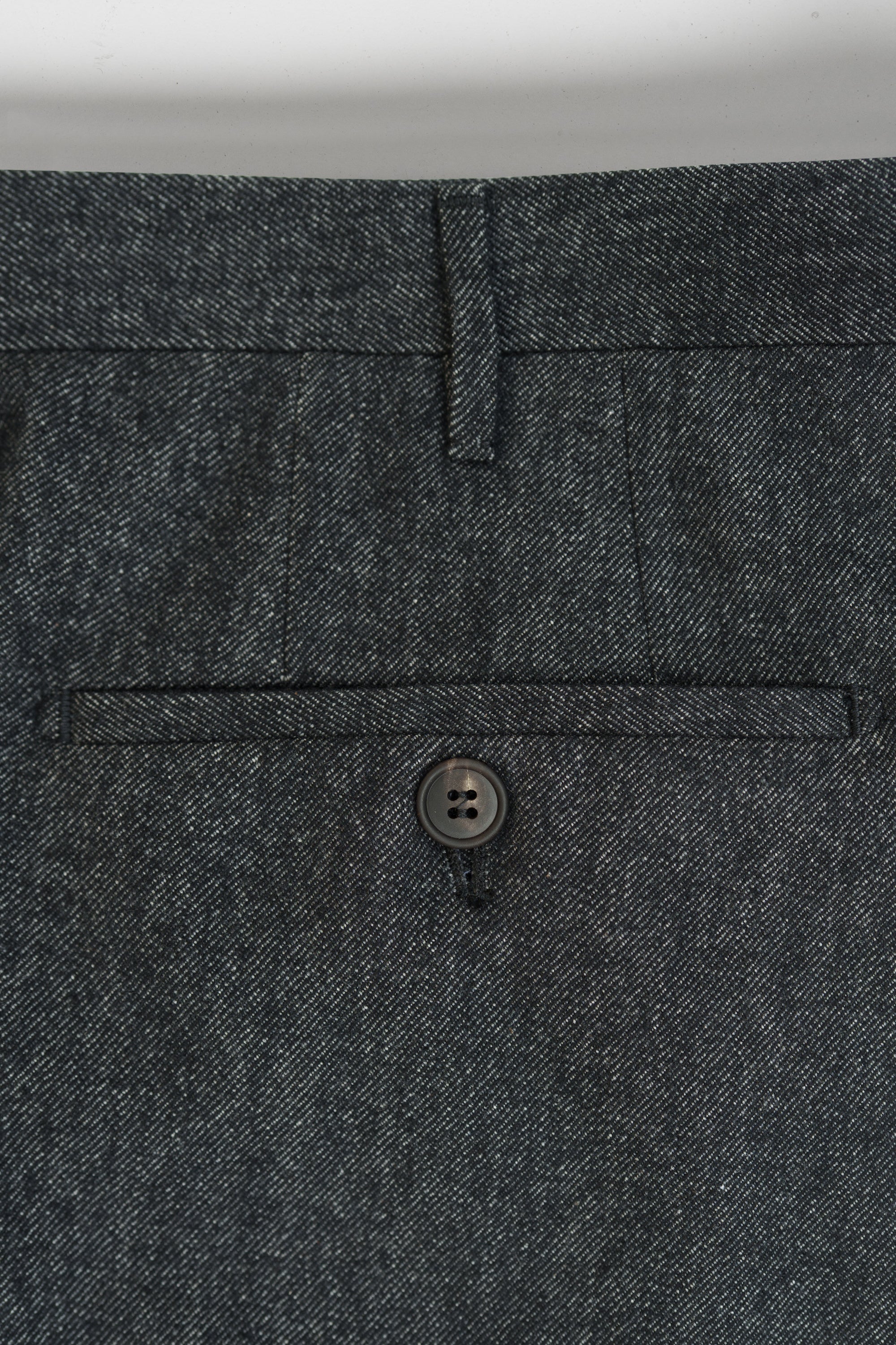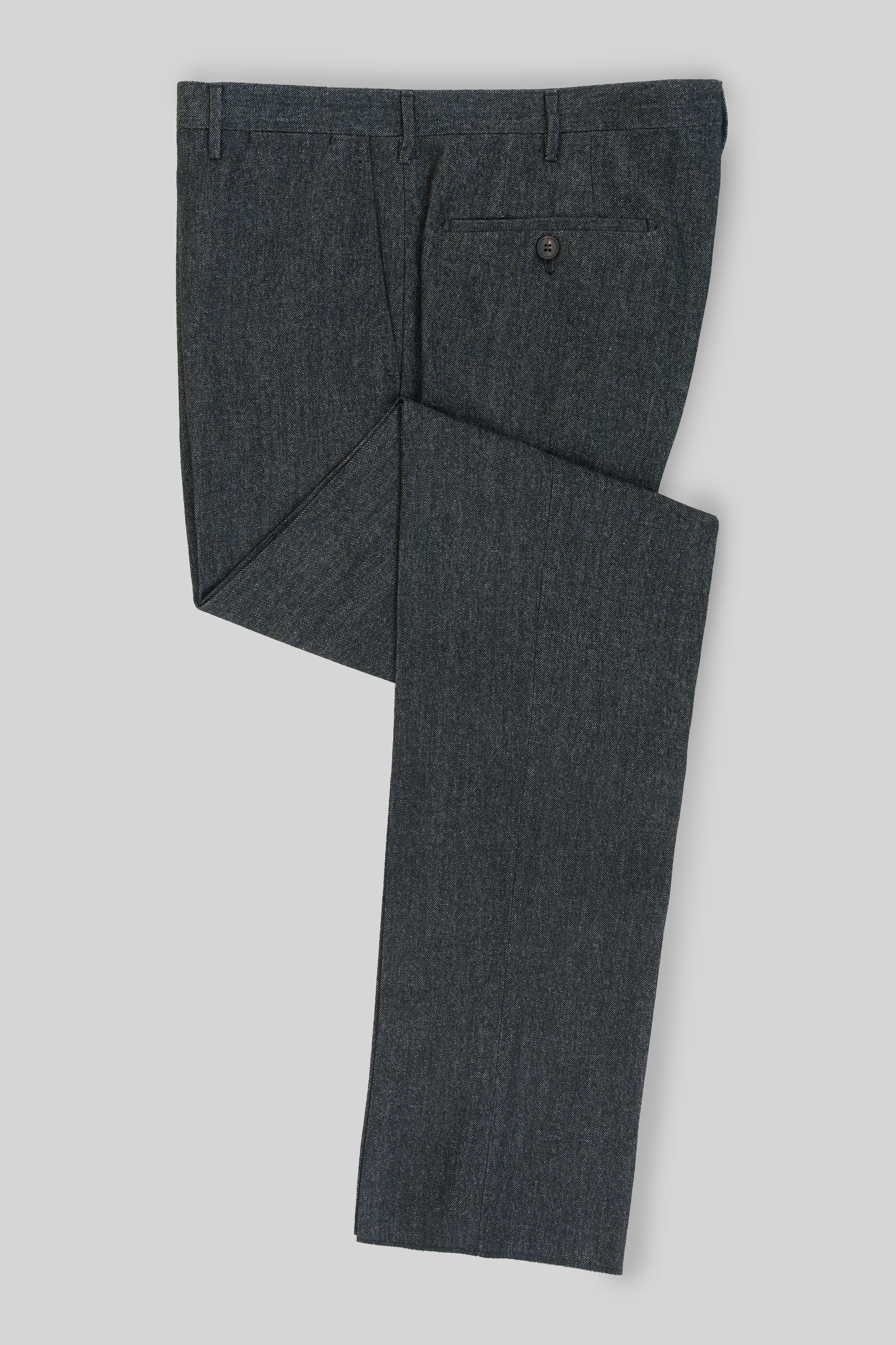 Our sartorial trousers offered for the first time in a sartorial denim cotton wool. The timeless design features a concealed hook and zip closure, as well as two front pockets and two back pockets. The trousers are tailored to a regular fit with a medium rise and feature a half-lining with a button-through ticket pocket. They are perfect for dress up or casual occasions. The fabric is soft and warm, providing a comfortable fit. With its sophisticated look, our sartorial denim trousers are sure to make a statement with every wear.