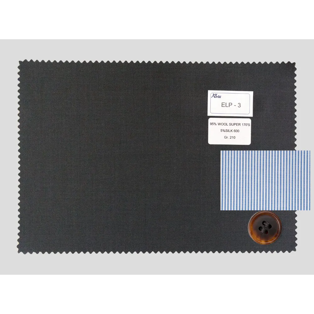 NEW SPECIAL Fabrics by Loro Piana {"Fabric": "95% Super 170'S Wool 5% Silk 600", "Season": "Summer", "Weight": "210gr/m2", "Code": "ELP-3", "Label": "Dark Grey Royal Wish ® by Loro Piana ", "Price": "€790.00"} [ELP-3] x1 (790)