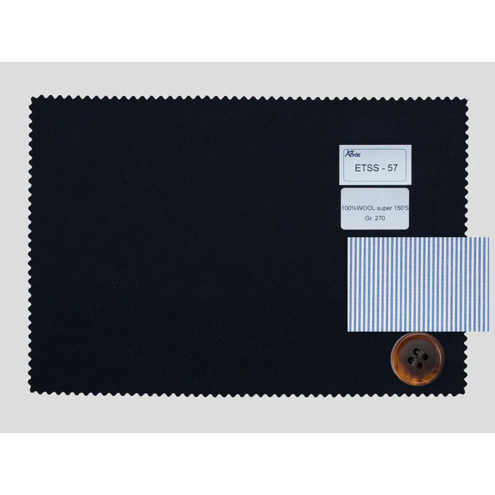 Wool Fabrics {"Fabric": "100% Wool Super 150'S", "Season": "Summer", "Weight": "270gr/m2", "Code": "ETSS-57", "Label": "NEW Dark BLue Worsted Wool 150'S", "Price": "€599.00"} [ETSS-57] x1 (599)
