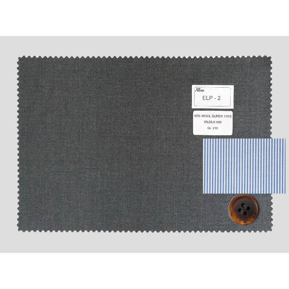 NOVITA' tessuti speciali di Loro Piana {"Tessuto": "95% Lana Super 170'S + 5% Seta 600", "Stagione": "Estate", "Peso": "210g/m2", "Codice": "ELP-2", "Label": "Royal Wish ® di Loro Piana Grigio Medio", "Prezzo": "€839.00"} [ELP-2] x1 (839)