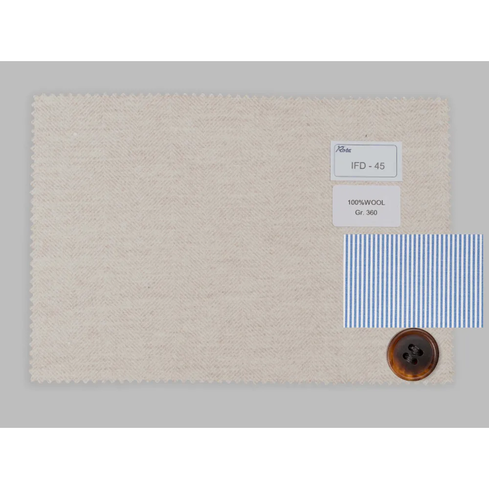 Lane Microfantasia, Spina di Pesce e Fantasia {"Tessuto": "100% Lana", "Stagione": "Inverno", "Peso": "360gr/m2", "Codice": "266", "Etichetta": "Flanella Spina di Pesce Beige Chiaro", "Prezzo": "€525,00"} [266] x1 (525)