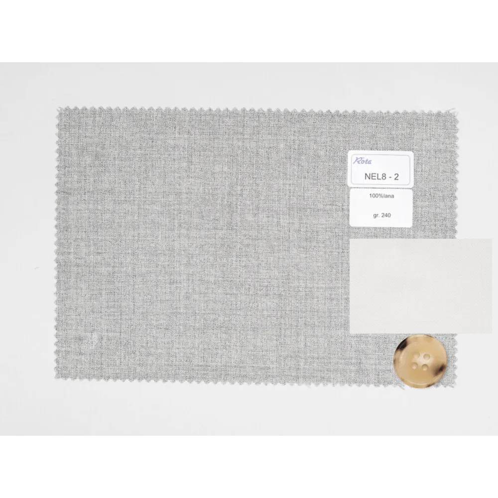 Tessuti di lana {"Tessuto": "100% Lana", "Stagione": "Estate", "Peso": "240gr/m2", "Codice": "stoffe036", "Etichetta": "Lana due ritorti grigio chiaro", "Prezzo": "€525,00"} [stoffe036] x1 (540)