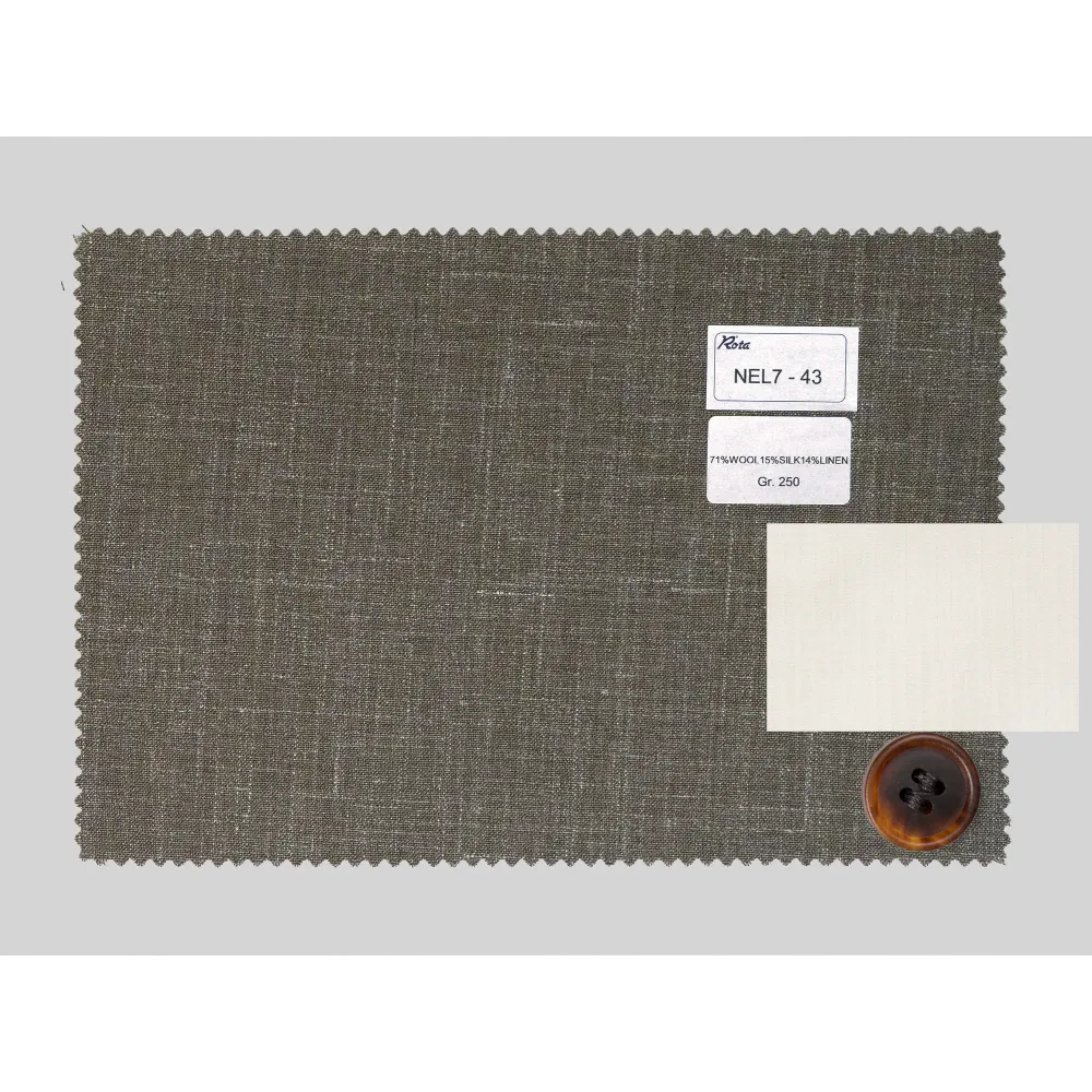 Tessuti in Lana-Seta-Lino di Loro Piana {"Tessuto": "71%Lana 15%Seta 14%Lino", "Stagione": "Estate", "Peso": "250gr/m2", "Codice": "24S15", "Etichetta": "NOVITÀ Loro Piana Lana Seta Lino Marrone Chiaro", "Prezzo": "€609,00"} [24S15] x1 (619)