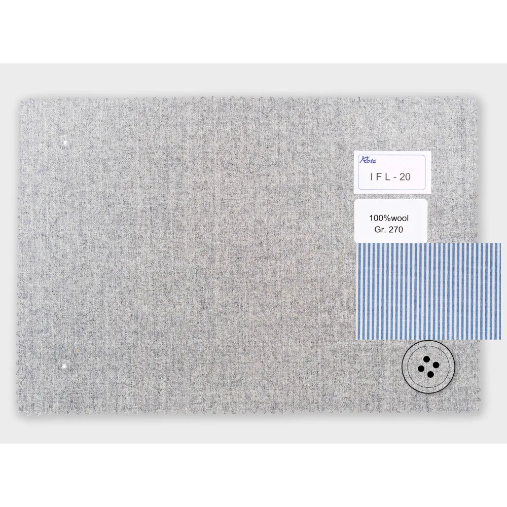 Flanella di lana {"Tessuto": "100% Lana", "Stagione": "Inverno", "Peso": "270gr/m2", "Codice": "208", "Etichetta": "Flanella leggera grigio chiaro", "Prezzo": "€525,00"} [stoffe208] x1 (525)