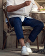 Personalizza i tuoi pantaloni leggeri in cotone ed elastan blu