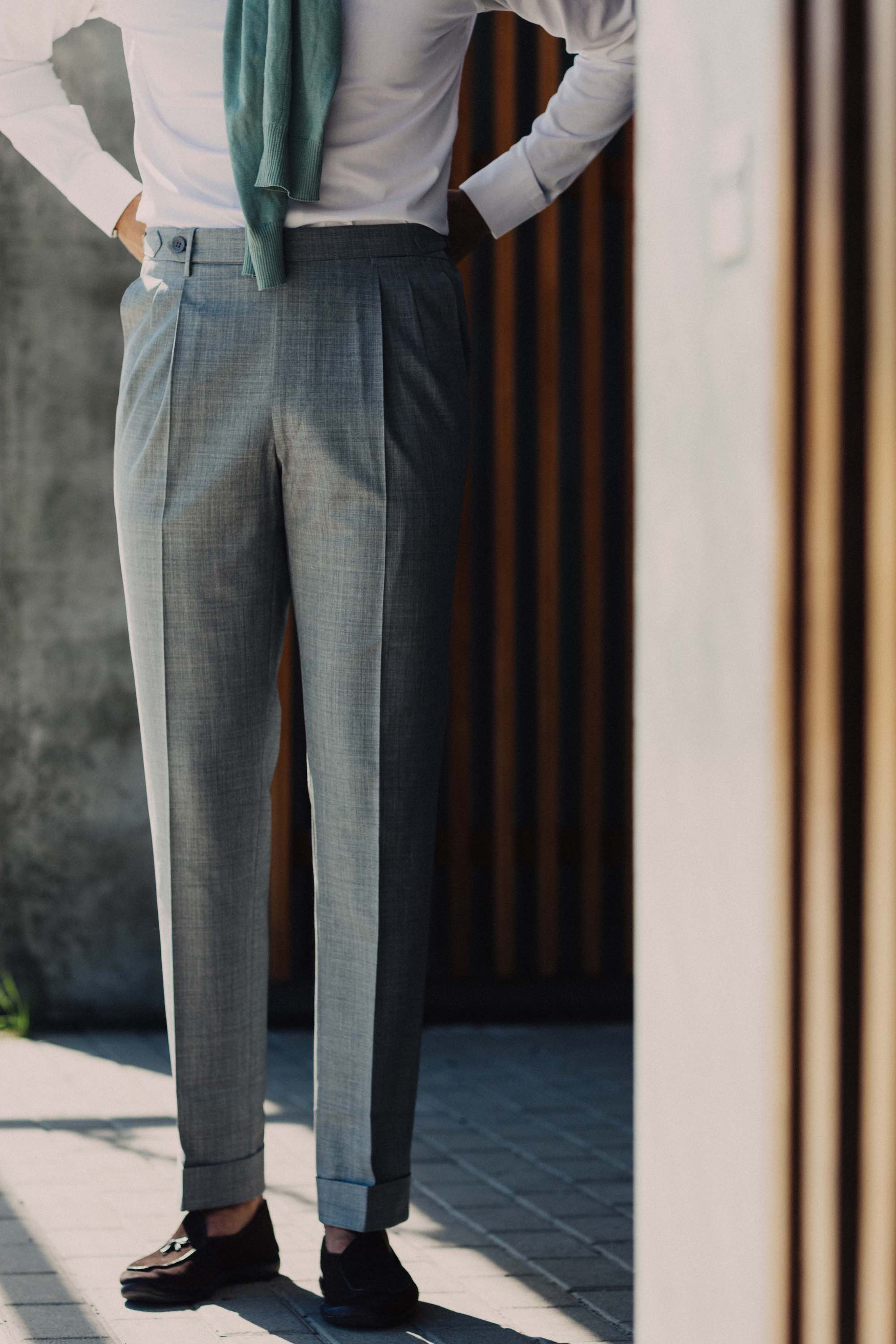 Sobri ed eleganti, i nostri pantaloni in lana grigio chiaro sono un vero e proprio capo essenziale del guardaroba maschile, perfetti da abbinare a maglie sportive e camicie di tutti i colori e fantasie. Realizzati in lana leggera e caratterizzati da vita alta, doppia piega frontale, ampia cintura e regolatori laterali, in linea con gli standard della nostra linea Sartorial, i nostri pantaloni grigio chiaro sono sinonimo di eleganza sobria e versatilità senza pari.