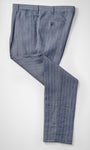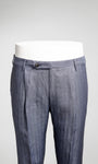 Pantaloni in lino blu medio a spina di pesce, vestibilità regolare