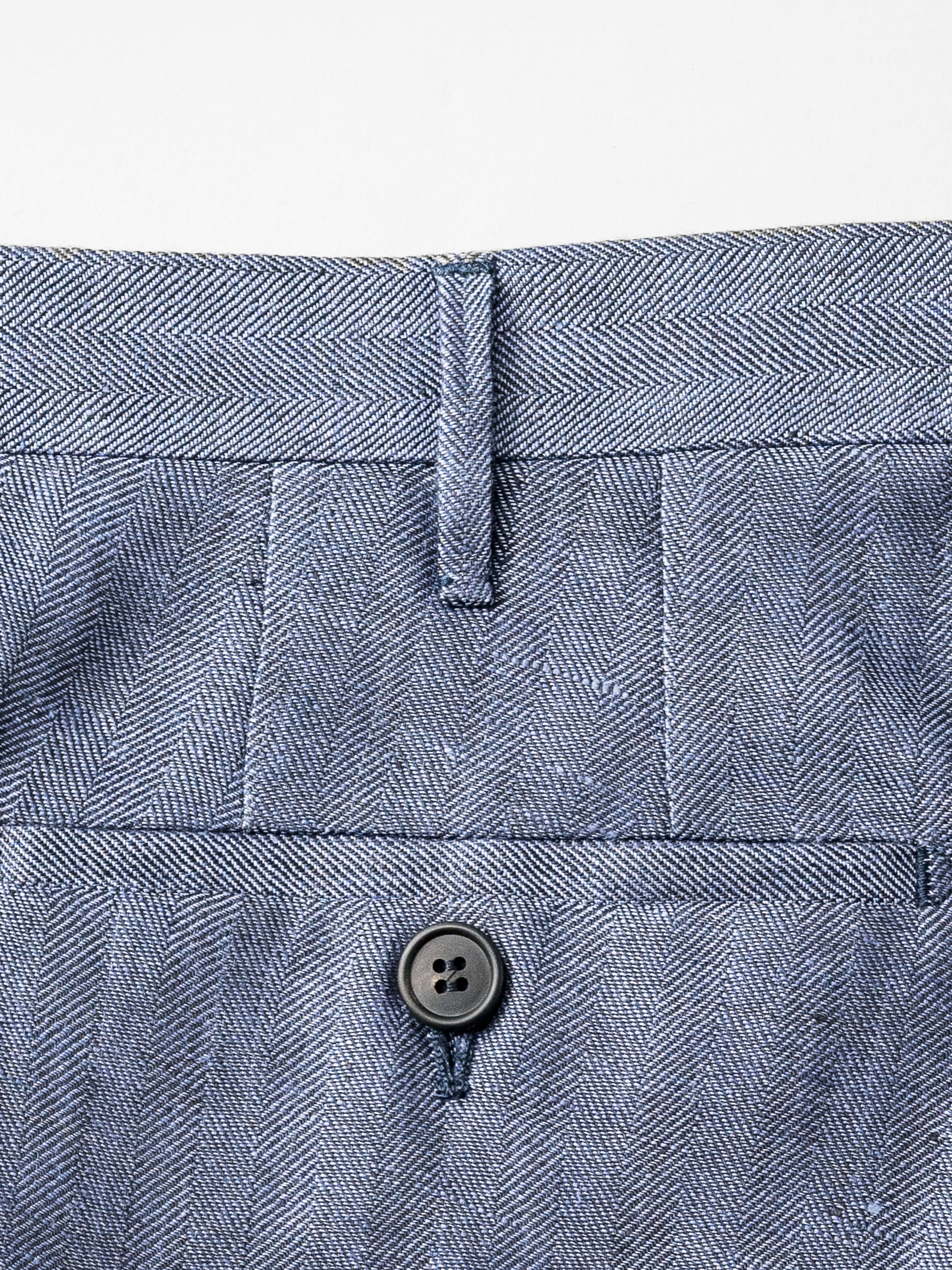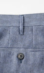Personalizza il tuo paio di pantaloni in lino blu medio a spina di pesce dalla vestibilità regolare