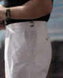 Scegli la tua avventura. Guarda la vita attraverso la tua lente. Affidati al tuo occhio e al tuo gusto raffinato per camminare con comodità e stile. Tipicamente italiani, i nostri pantaloni in cotone supima bianco sono caratterizzati da una piega singola e da una vestibilità regolare lungo la gamba. Progettati per essere indossati sul punto vita naturale senza cintura, questi pantaloni dimostreranno al mondo che hai imparato l'arte di vivere.