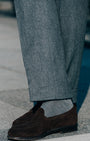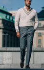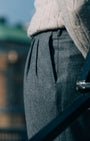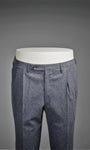 Questi versatili pantaloni grigio chiaro diventeranno presto un capo fondamentale del tuo guardaroba. Questo modello a vita alta, vestibilità regolare e doppia piega è stato realizzato in Italia in flanella di lana di alta qualità. Non c'è niente di meglio di una calda flanella durante le giornate fredde: la morbidezza e il calore di questi pantaloni renderanno le tue giornate più piacevoli.