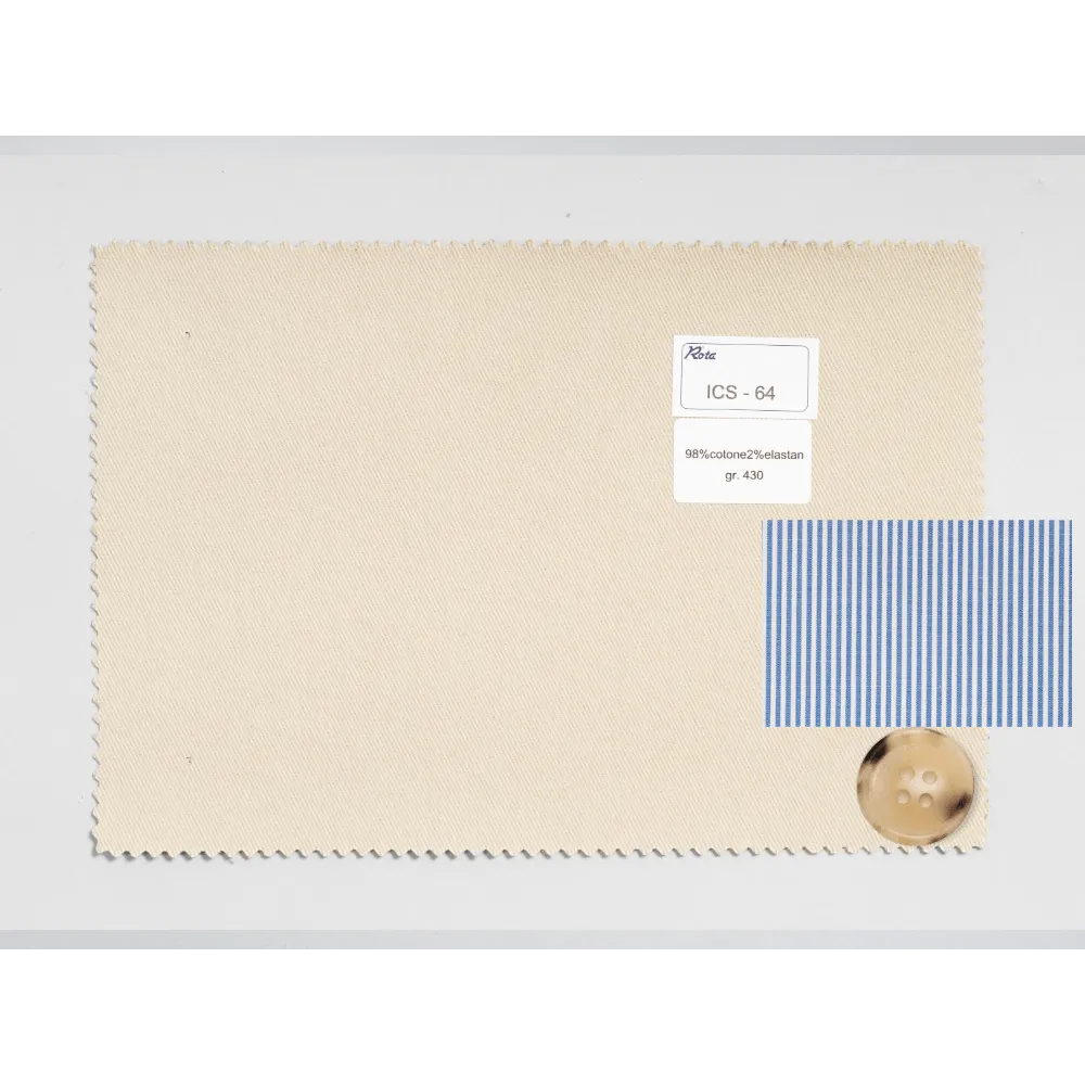 Cotoni {"Tessuto": "98% Cotone 2% Elastan", "Stagione": "Inverno", "Peso": "430gr/m2", "Codice": "00147", "Etichetta": "Cotone Stretch Beige Chiaro", "Prezzo": "€419,00"} (419)