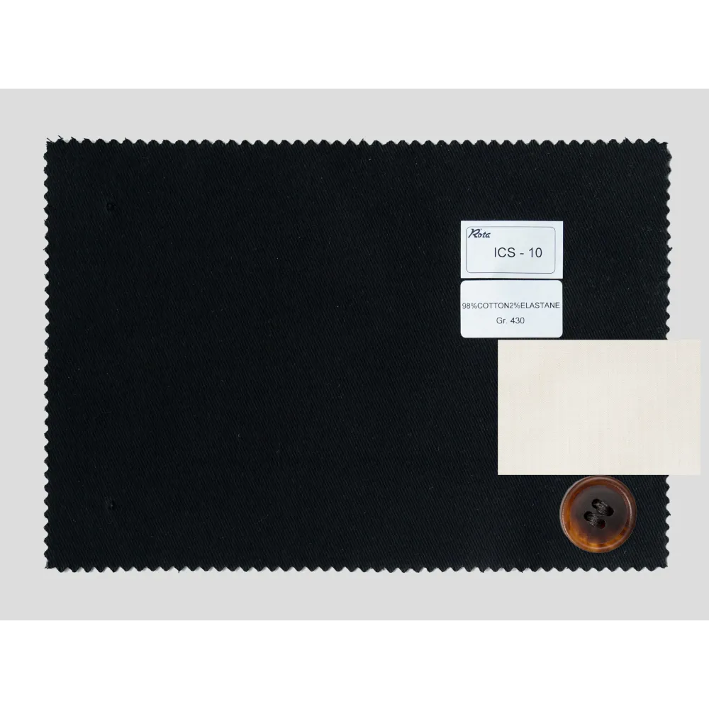 Cottons {"Fabric": "98% Cotton 2% Elastan", "Season": "Winter", "Weight": "430gr/m2", "Code": "217", "Label": "NEW Black Cotton Stretch", "Price": "€419.00"} [ICS-10] x1 (419)