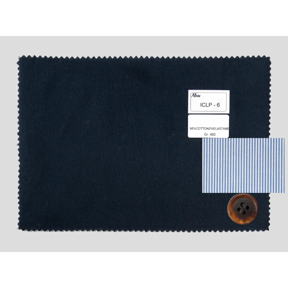 --NOVITÀ--Tessuti LORO PIANA {"Tessuto": "98% Cotone 2% Elastan", "Stagione": "Inverno", "Peso": "480gr/m2", "Codice": "ICLP-6", "Etichetta": "Cotone Elastan Blu Scuro by LP", "Prezzo": "€699,00"} [ICLP-6] x1 (699)