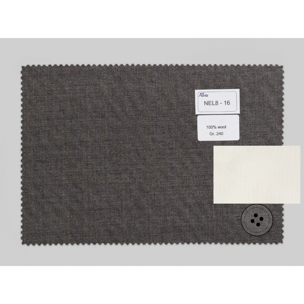 Tessuti di lana {"Tessuto": "100% Lana", "Stagione": "Estate", "Peso": "240gr/m2", "Codice": "stoffe155", "Etichetta": "Lana a due strati grigio talpa scuro", "Prezzo": "€525,00"} [stoffe155] x1 (540)