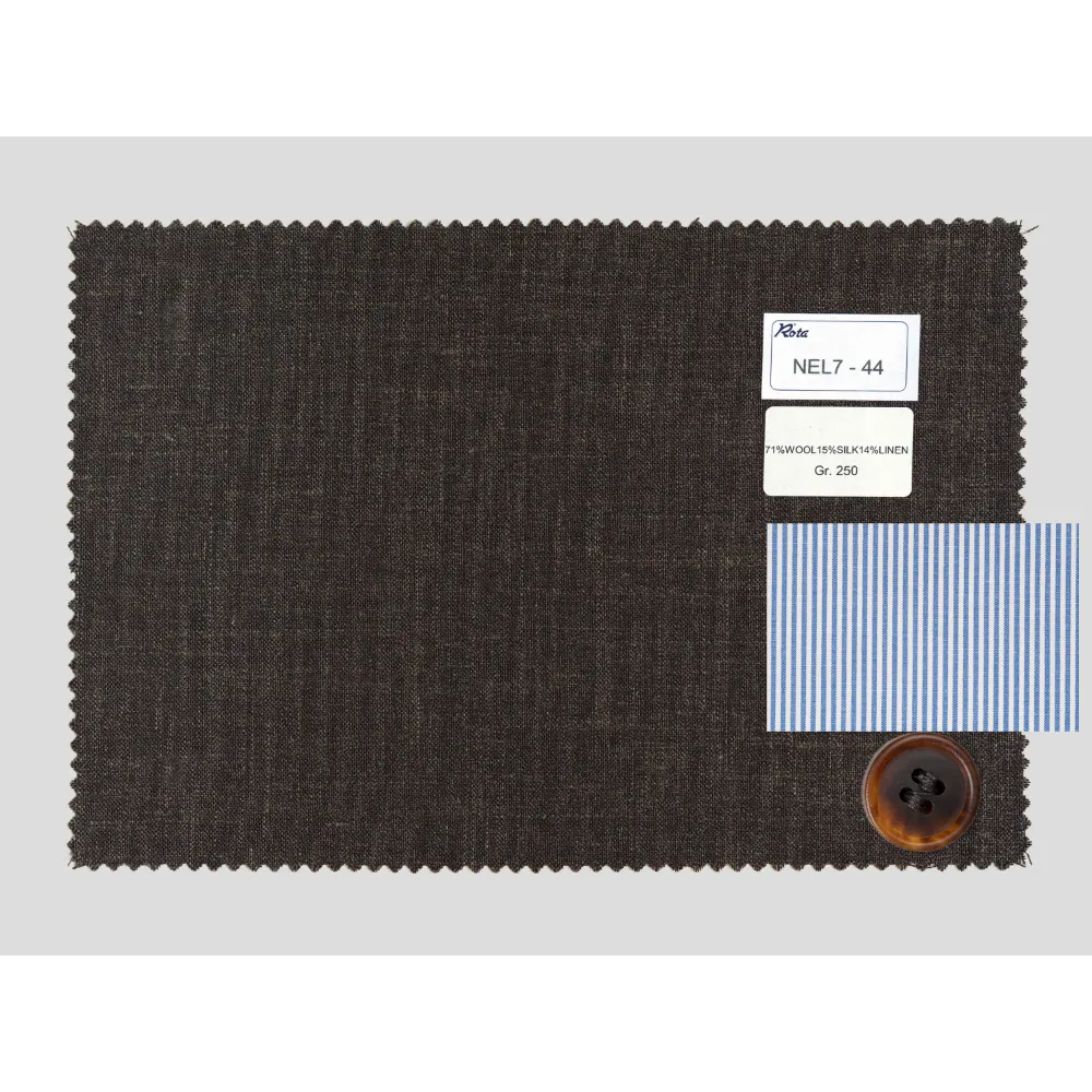 NEW SPECIAL Fabrics by Loro Piana ® {"Fabric": "71%Wool 15%Silk 14%Linen", "Season": "Summer", "Weight": "250gr/m2", "Code": "NEL7-44", "Label": "Dark Brown Loro Piana Wool Silk Linen ", "Price": "€659.00"} [NEL7-44] x1 (659)