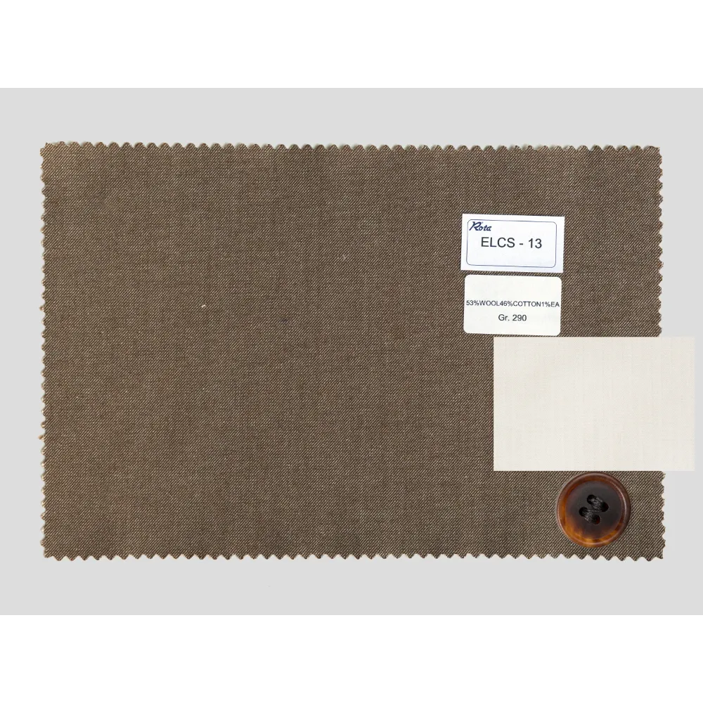 Tessuti in lana e cotone NUOVI {"Tessuto": "53%lana 46%cotone 1%elastan", "Stagione": "Estate", "Peso": "290gr/m2", "Codice": "ELCS-13", "Etichetta": "NUOVO Lana Cotone Elastan Marrone", "Prezzo": "€509,00"} [ELCS-13] x1 (509)
