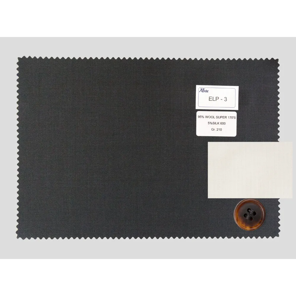 NUOVI Tessuti SPECIALI di Loro Piana {"Tessuto": "95% Lana Super 170'S 5% Seta 600", "Stagione": "Estate", "Peso": "210gr/m2", "Codice": "ELP-3", "Etichetta": "Grigio Scuro Royal Wish ® di Loro Piana ", "Prezzo": "€790,00"} [ELP-3] x1 (790)