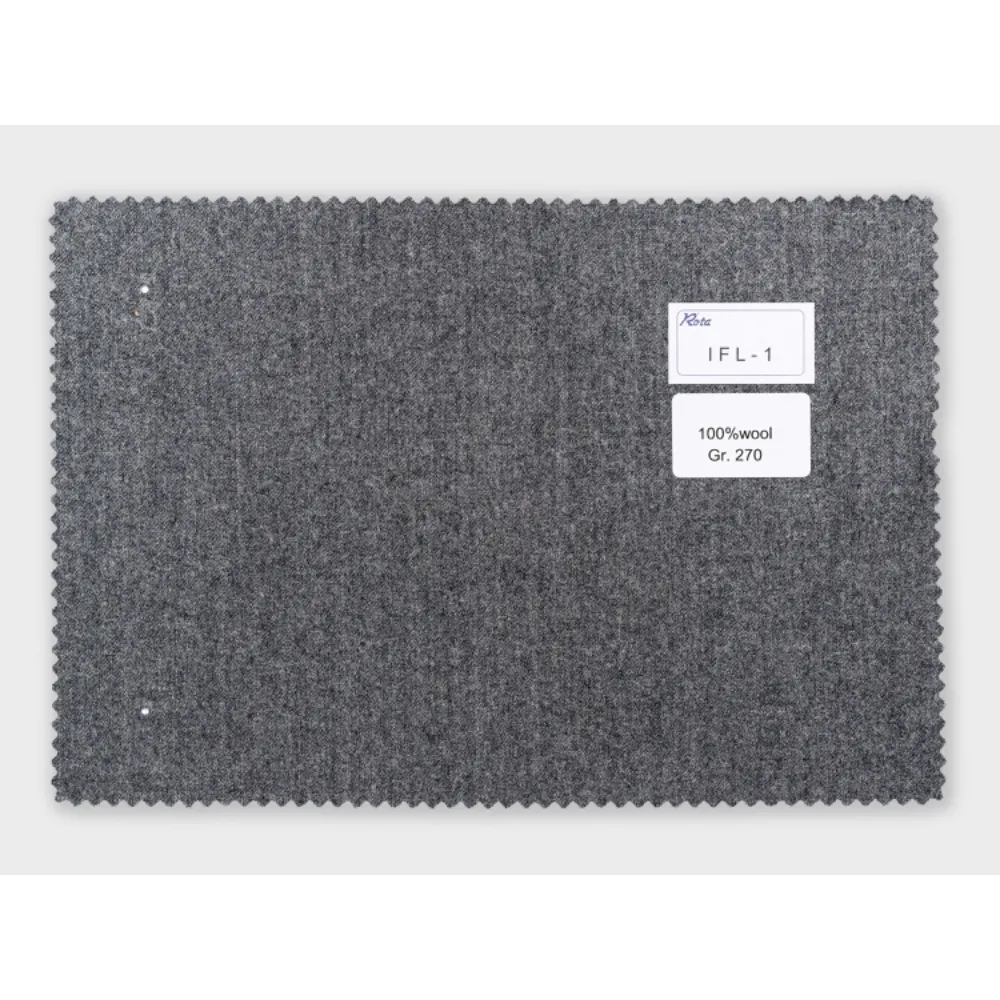 Flanella di lana {"Tessuto": "100% Lana", "Stagione": "Inverno", "Peso": "270gr/m2", "Codice": "205", "Etichetta": "Flanella leggera grigia", "Prezzo": "€525,00"} [stoffe205] x1 (525)