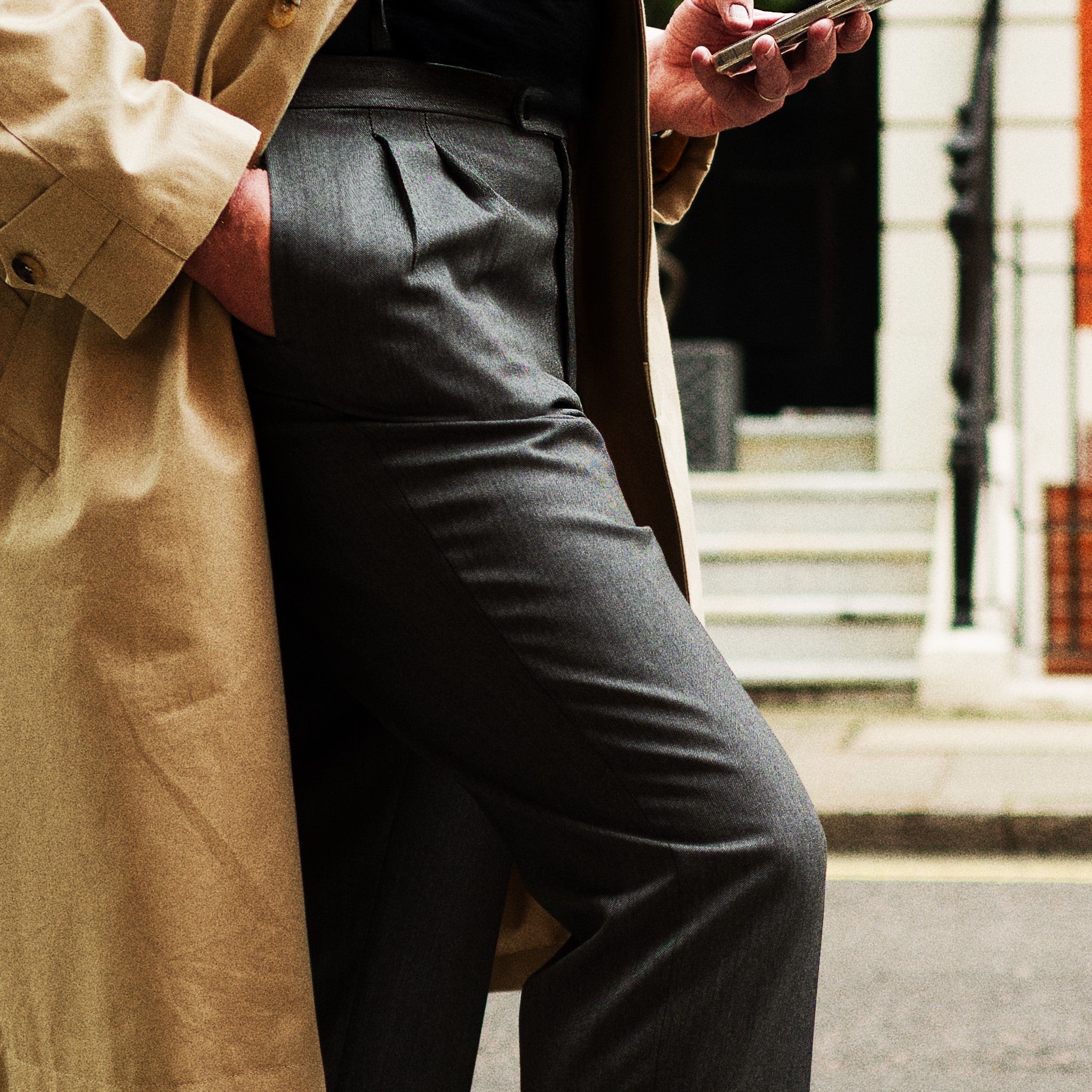 Personalizza i tuoi pantaloni Milano in lana a tre capi grigio scuro