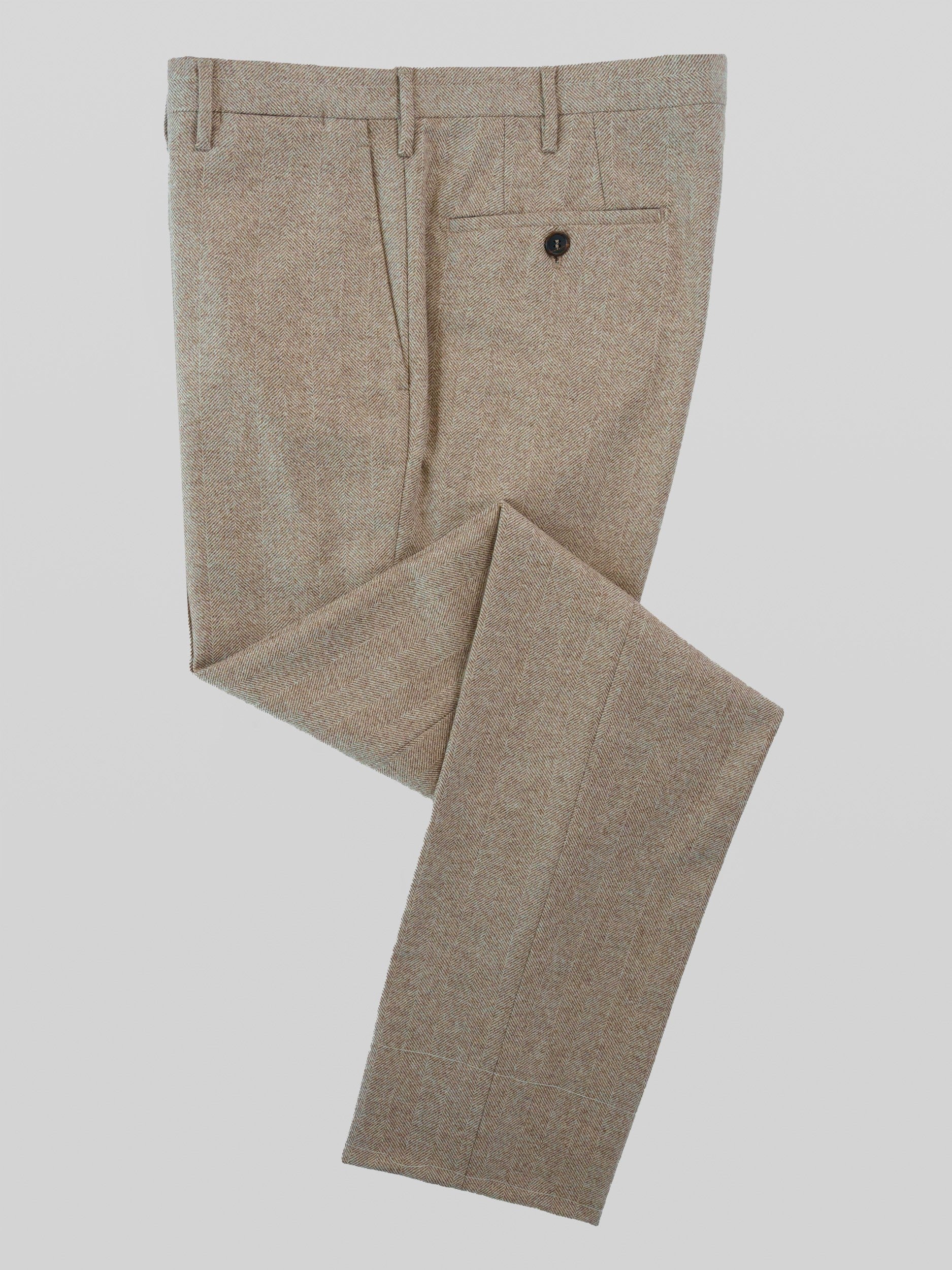 Rota Sartorial Line's beige herringbone flannel trousers showcase quality craftsmanship and timeless style. The Regular Fit cut and featuring a medium rise waist, these trousers feature a tonal stitching. These trousers are the perfect addition to any wardrobe. For those wanting to look their best, Rota Sartorial Line's beige herringbone flannel trousers are the perfect choice. These trousers exude quality and refinement.