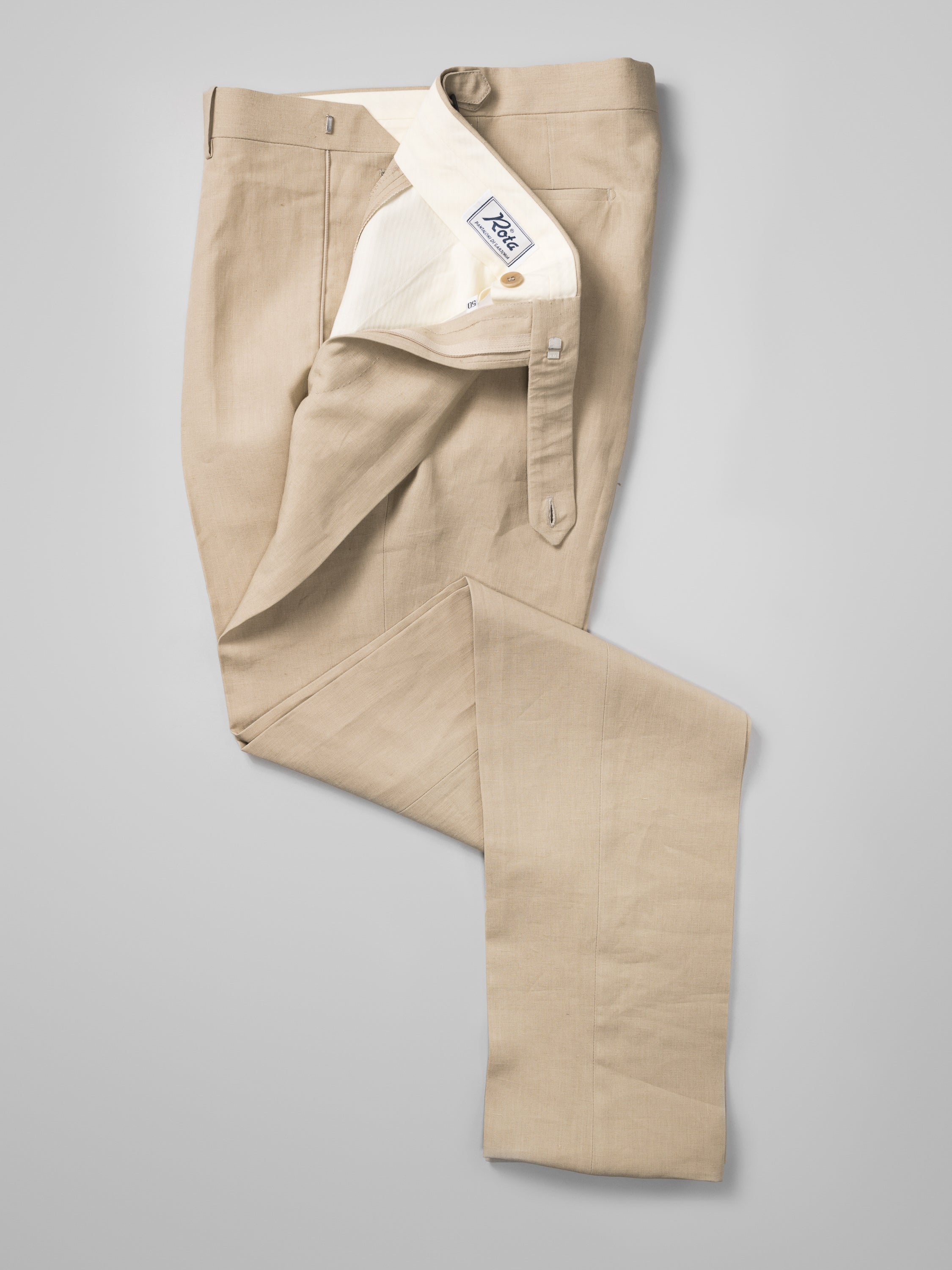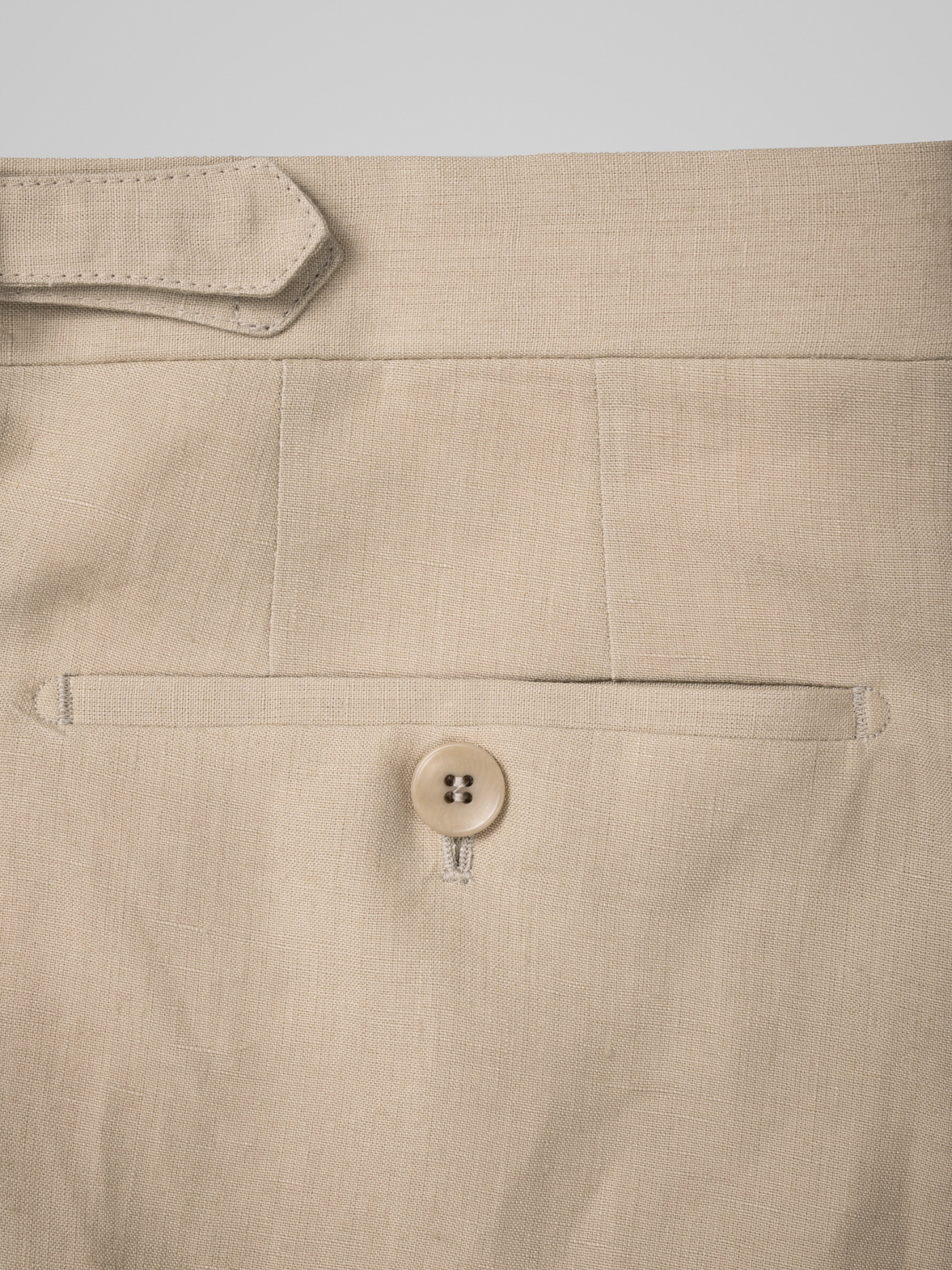 .Cut from crisp Irish linen and replete with a double-pleated front, side adjusters, a higher rise and an elongated waistband, these trousers have been crafted with the sartorial savant in mind. The louche and luxurious qualities of linen lend themselves to the fuller, more classic silhouette, while the beige tone radiates warmth and effortless elegance - ensuring they can be worn with just about anything this summer.