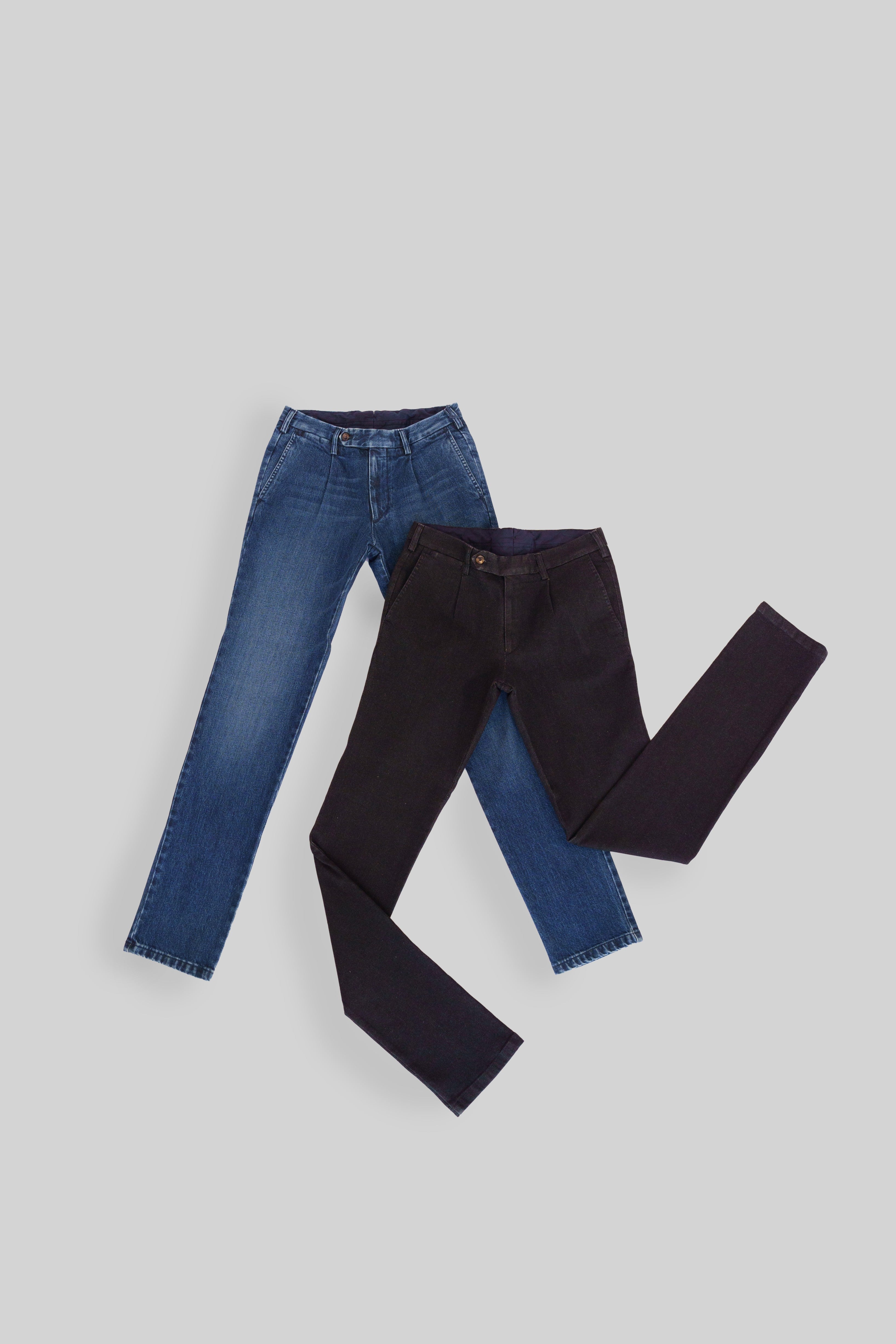 These beautiful denim trousers are made with a very soft and warm cotton with a 1-pleat style to make them stand our of the crowd and to make them the perfect denim for a Gentleman.