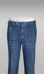Blue denim cotton sport trousers 2 Pleats