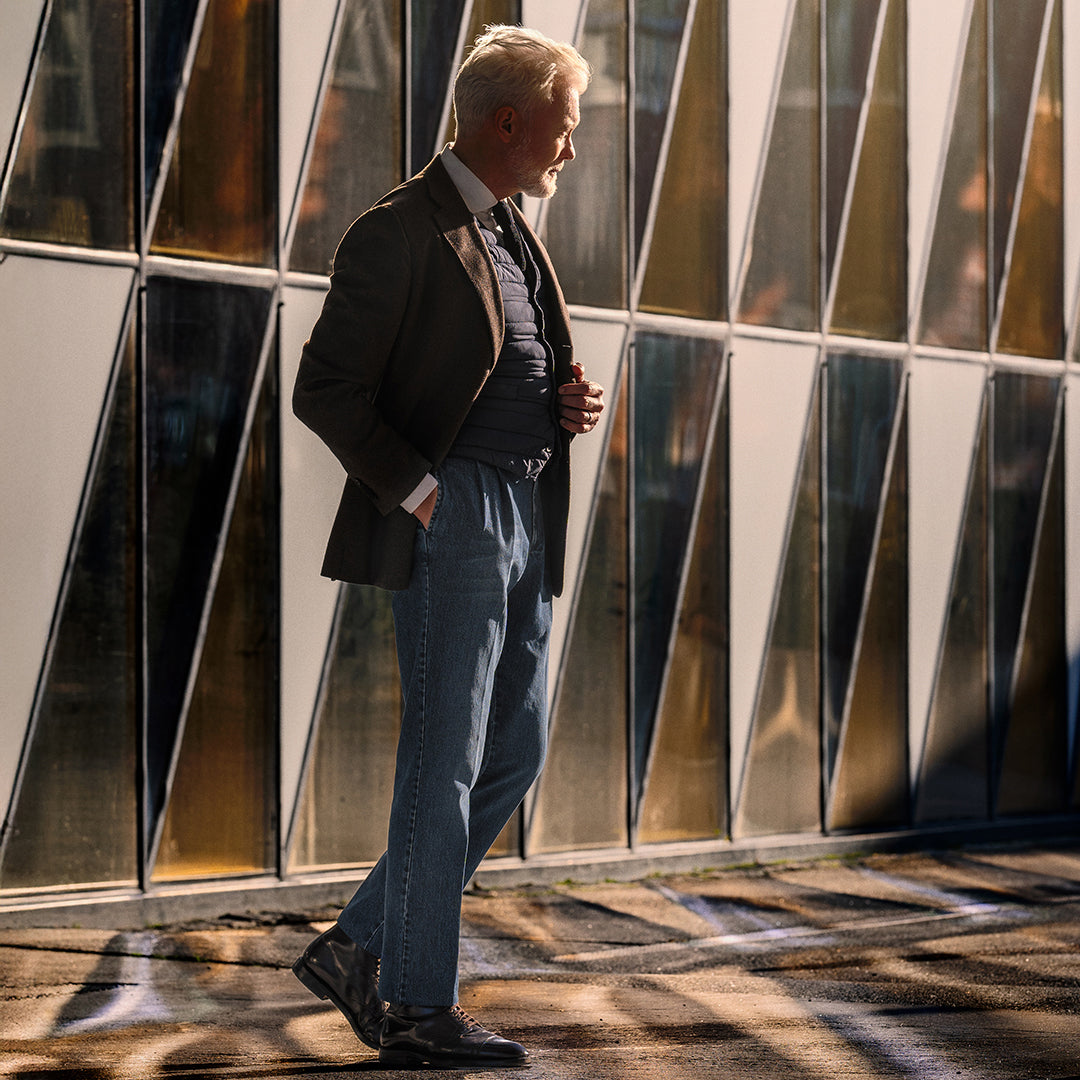 Quintessentially Italian, woven from a heavyweight and durable combination of cotton and elastane, our new Rota Sport line are trousers that you can trust. We've designed denim for gentlemen, with double pleats, a comfort fit through the leg and belt loops for good measure. We don't need to labour the versatility of this 'Blue Denim' slightly worn colourway, but we do ensure their sartorial propriety.