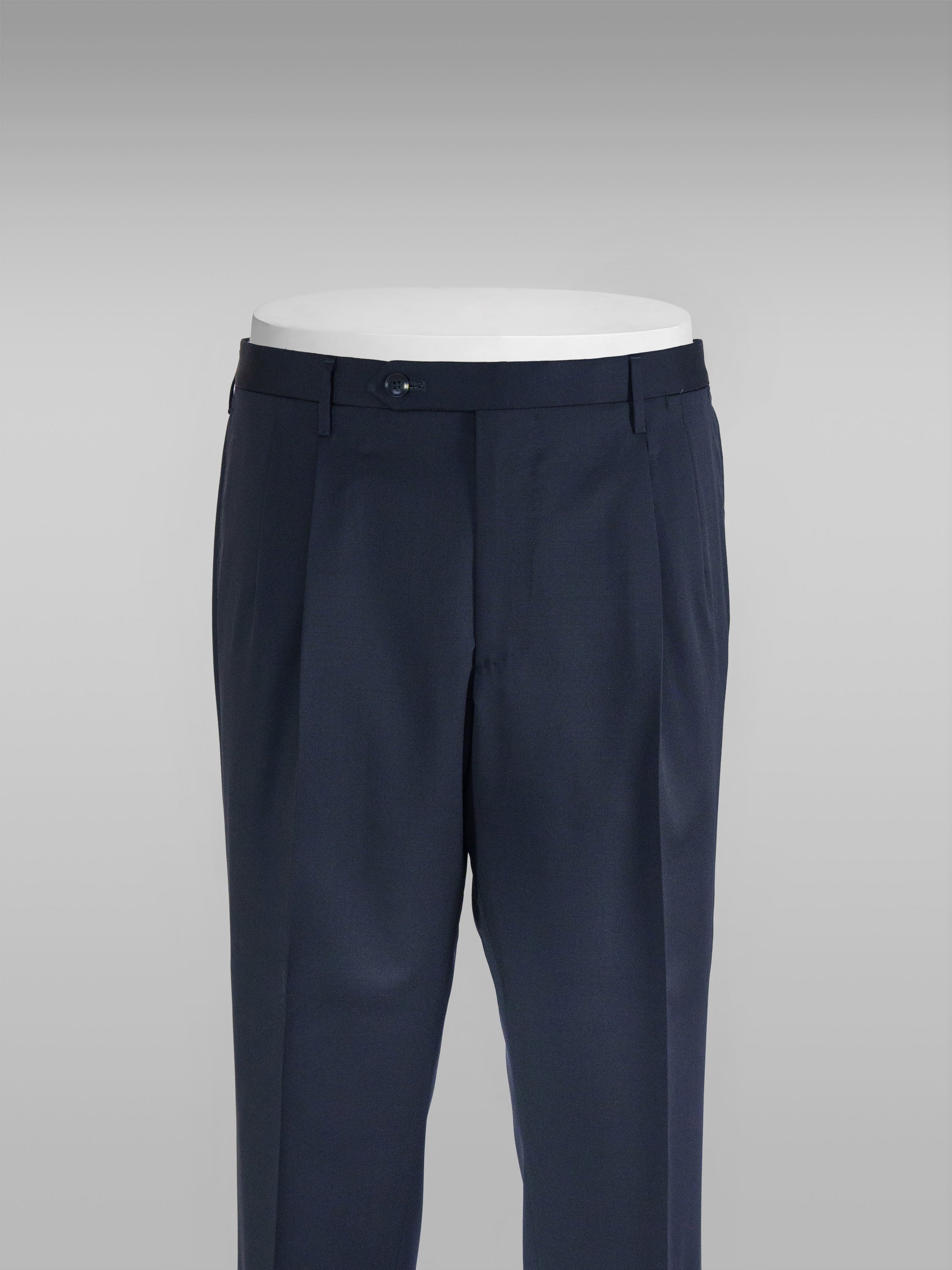 Just as we are inspired by the poetry that lives on in the pages of history, we turn to the sartorialists of the past to inform our world-renowned trousers. Behold our new Como high quality 150's super wool trousers, cut with a double pleat and more volume through the leg, channelling sophistication. Worn with a crisp white shirt and loafers, the dark blue color will anchor your ensemble and signal your innate confidence.