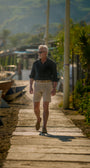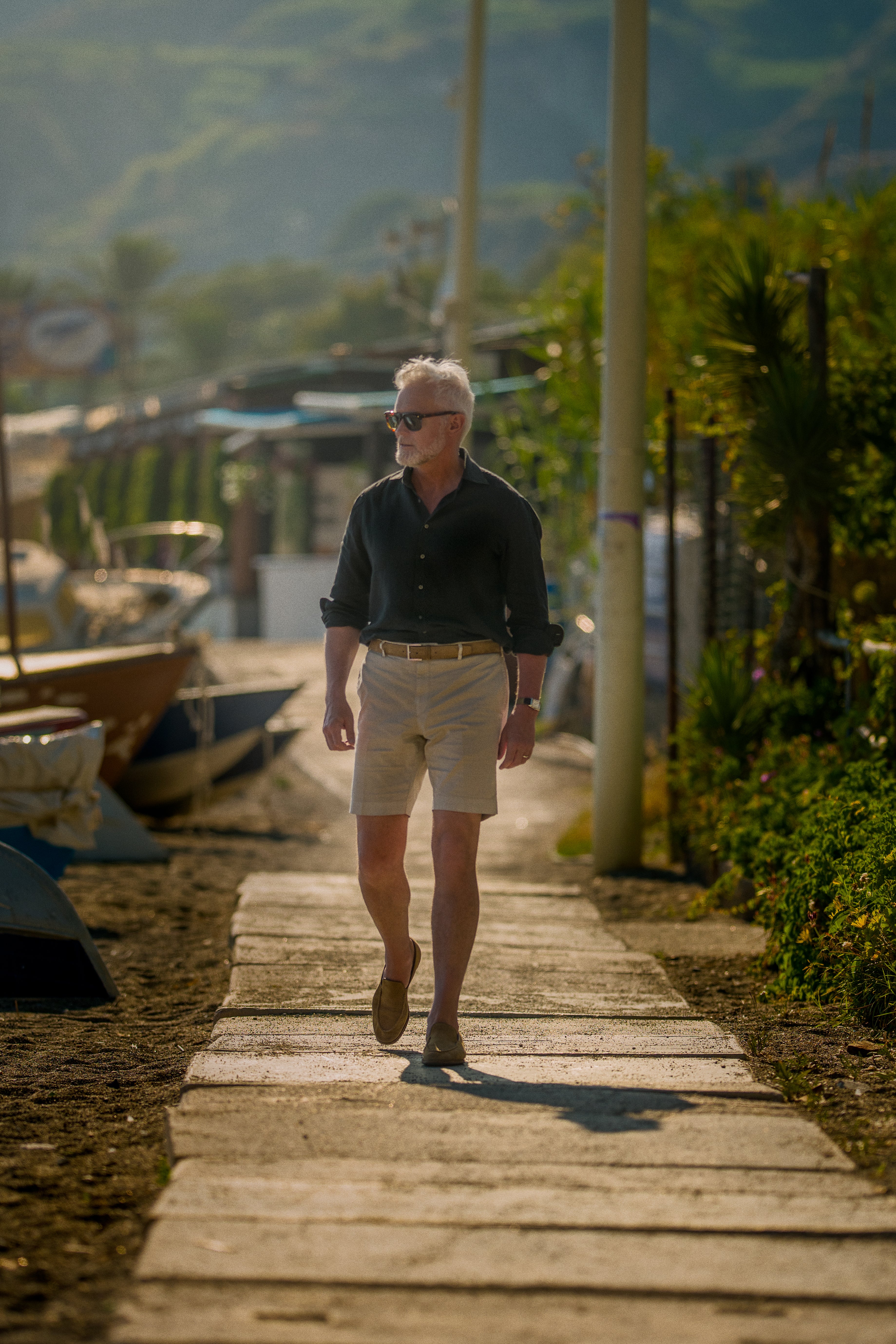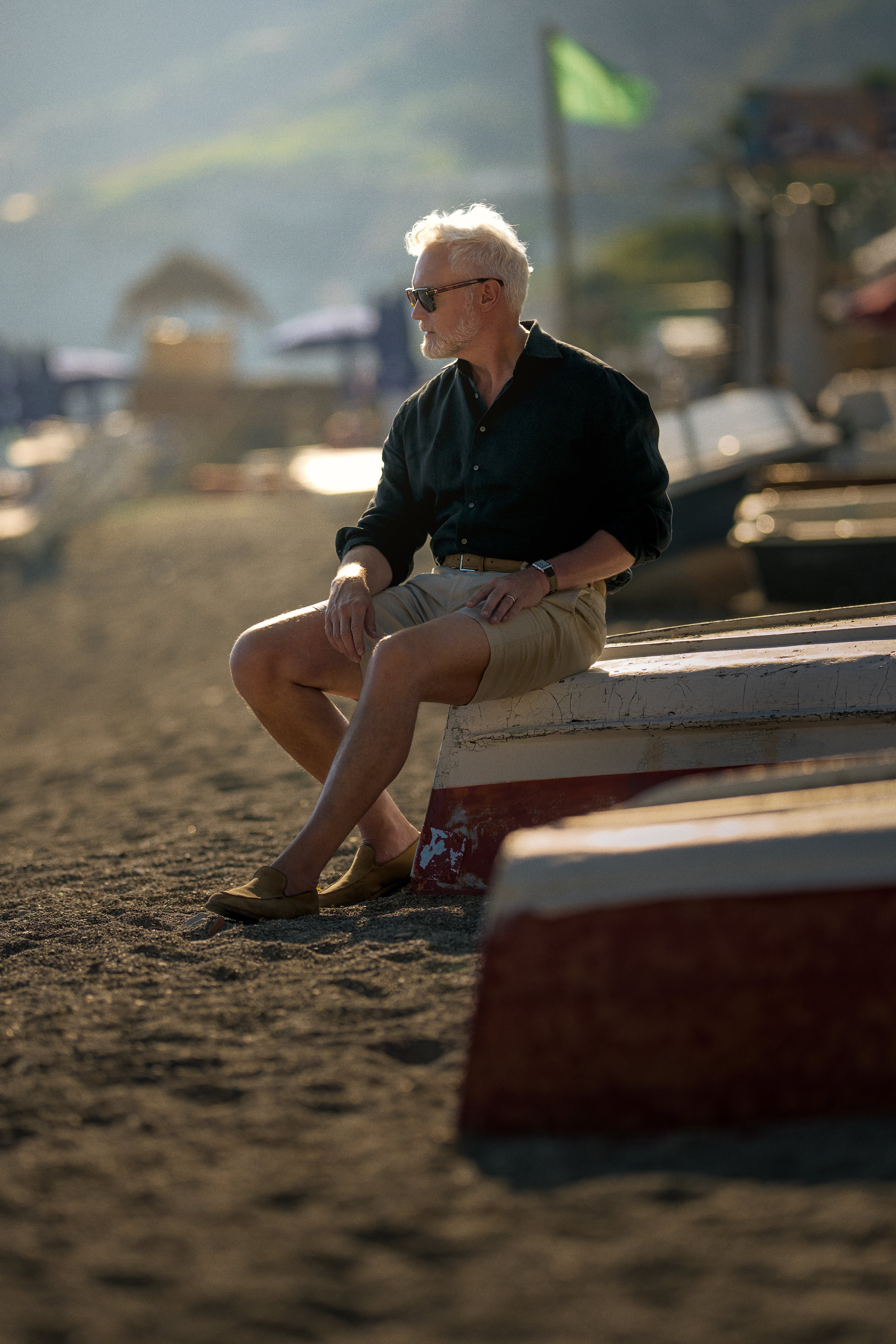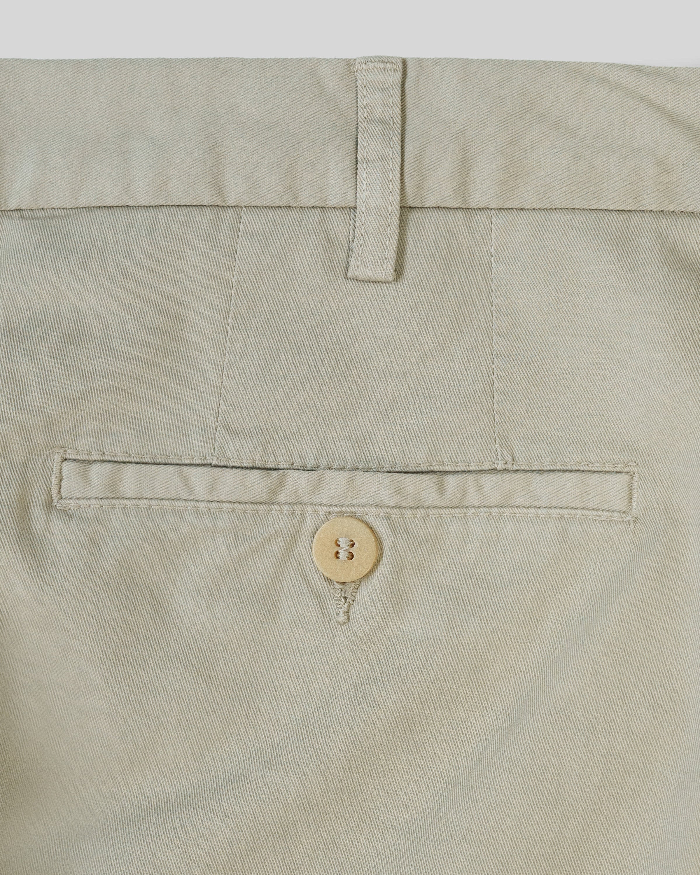 There is possibly no greater joy in life than the freedom of Bermuda shorts. Cut with a medium rise profile and made from a classic light beige cotton blend, they will faithfully serve you from a day on the shoreline to the evening at the hotel bar. These shorts are for those who have mastered the art of living and make no apologies for their out-of-office status.