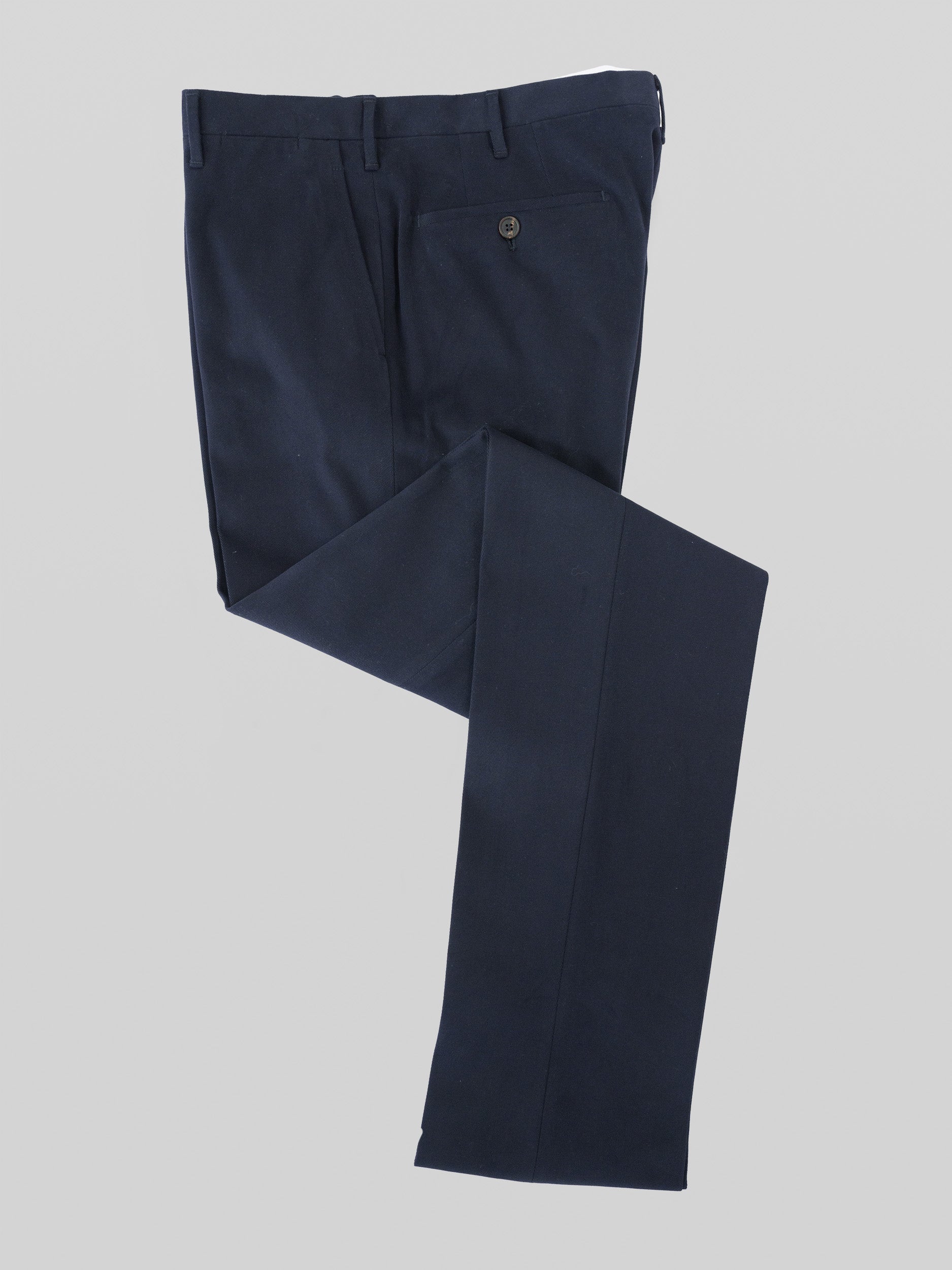 This dark blue colored pair has been expertly crafted in Italy with premium cotton-elastan, resulting in a Medium Rise design with Regular Fit and a brushed texture. Enjoy a supremely comfortable feel derived from this fabric blend's unparalleled softness and hint of stretch. The trousers offer a gentle stretch as you move, boosting freedom of movement and creating a flexible fit that adapts to your shape. The brushed texture adds to the sensation of plush comfort, while the Medium Rise and Regular Fit design guarantee a flattering silhouette.