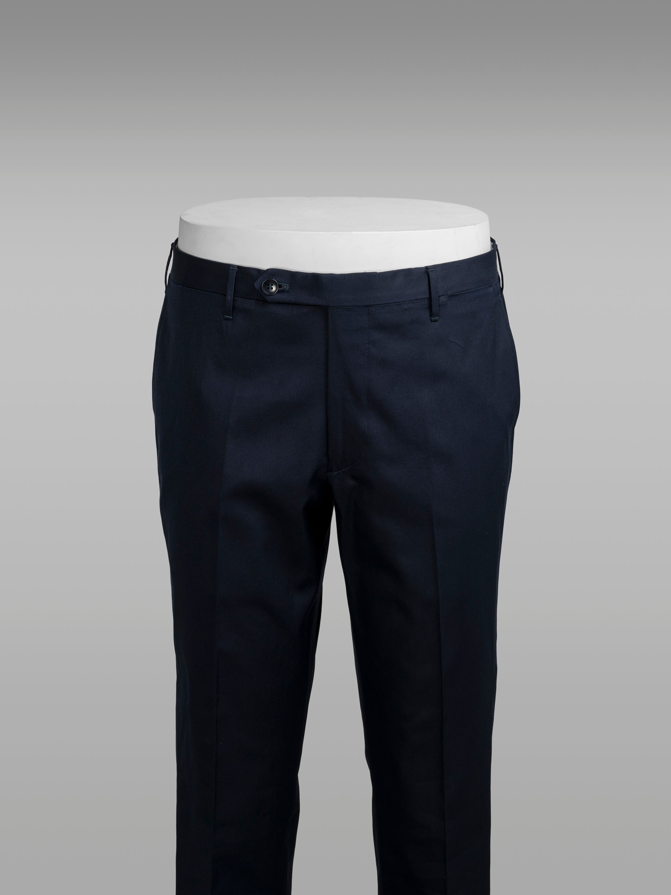 Dark blue pair of regular fit lightweight supima cotton trousers