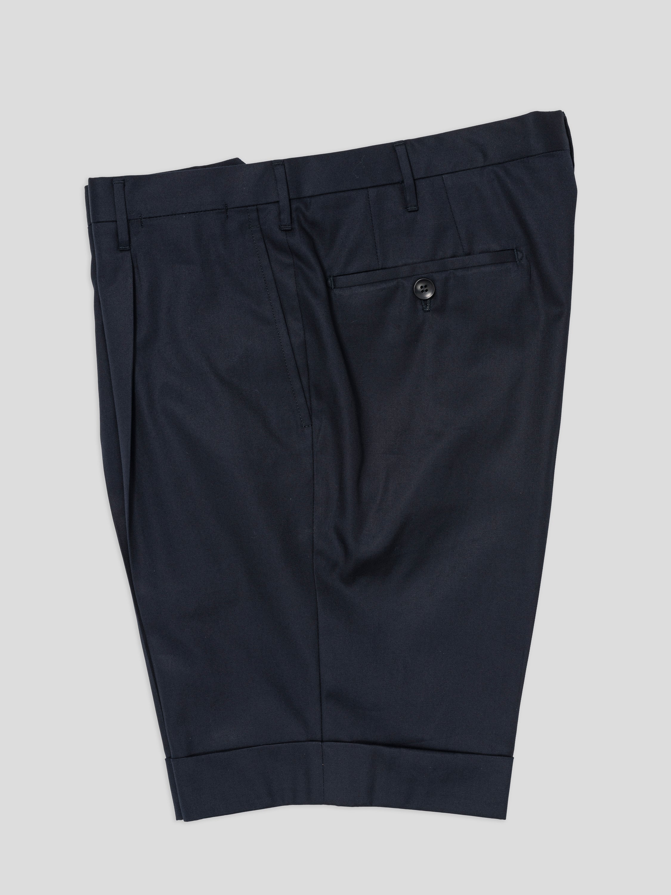Versatile dark blue supima cotton bermuda will fast become a key part of your core collection. This bermuda medium-rise regular-fit with 1 pleat has been made in Italy from an high quality lightweight supima cotton.