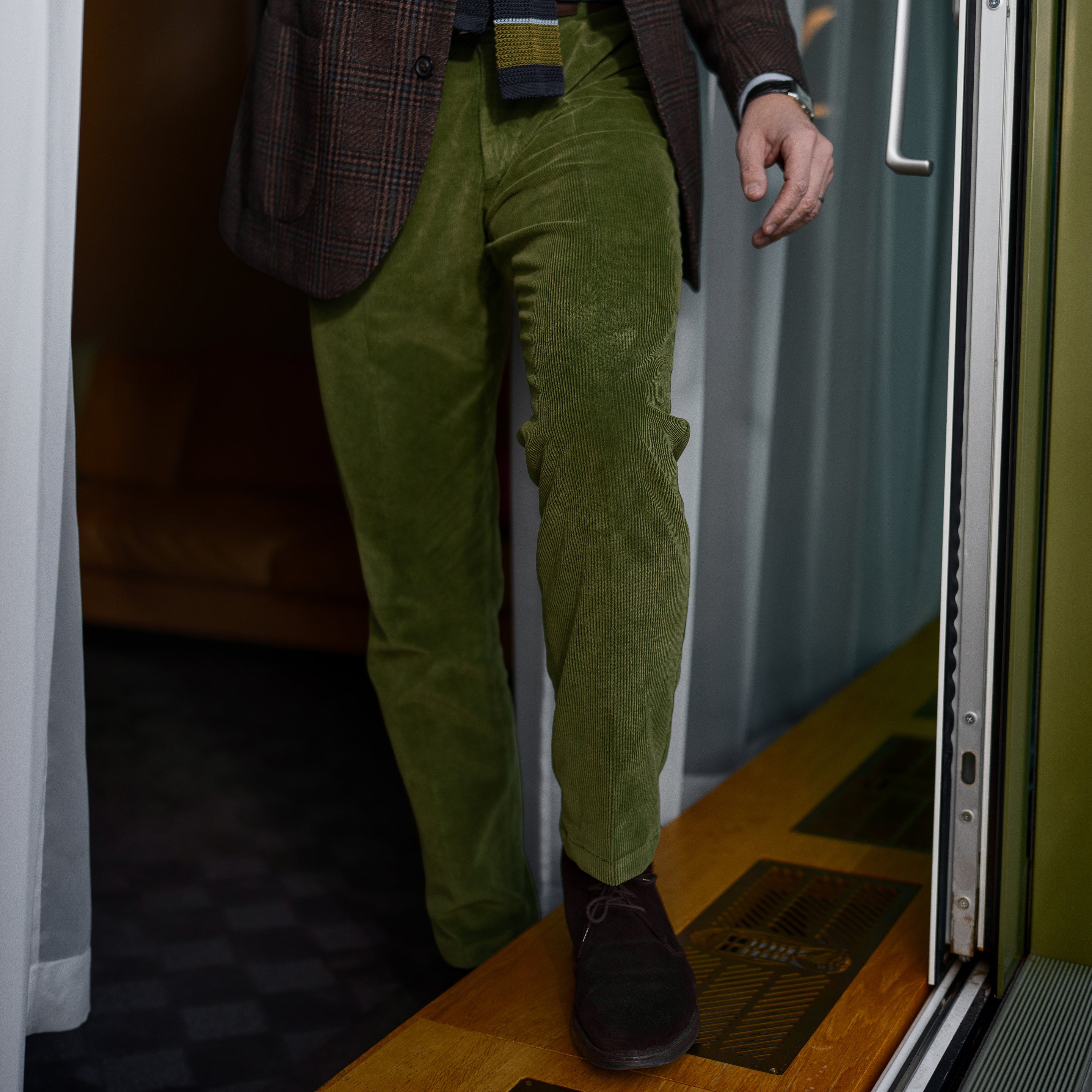 Green corduroy sport trousers 1 pleat