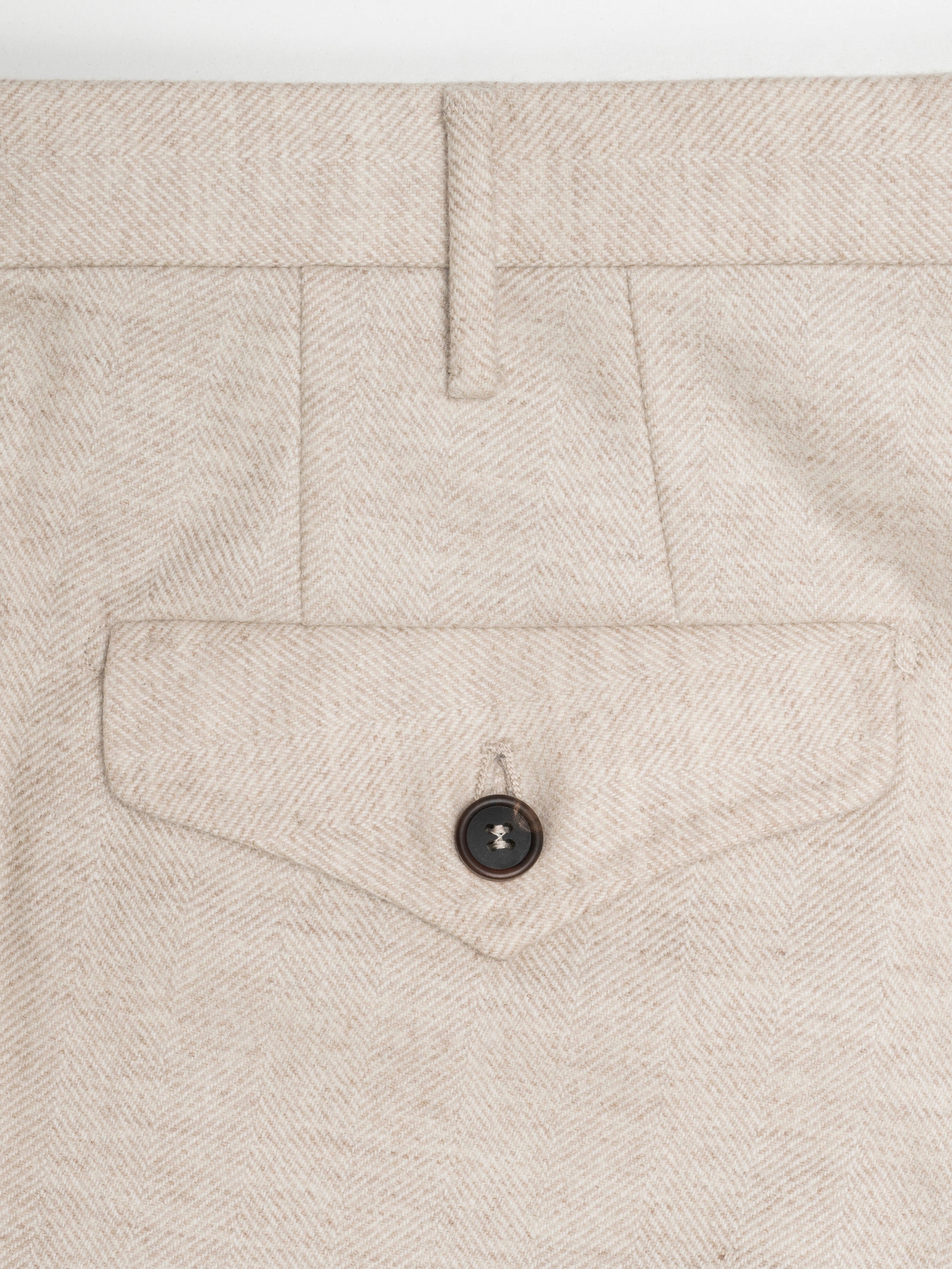 Light beige herringbone flannel trousers