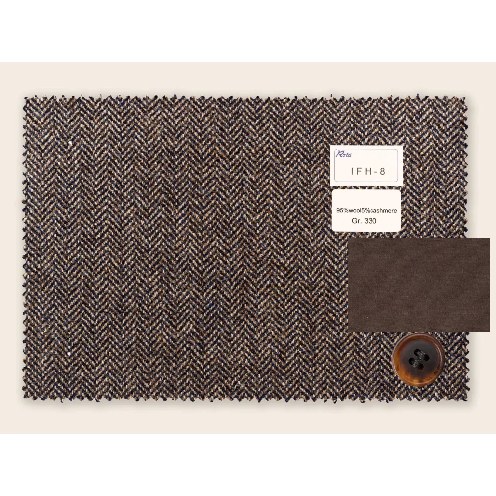 Micro Patterned, Herringbone and Fancy Wools {"Fabric": "95% Wool 5%Cashmere", "Season": "Winter", "Weight": "330gr/m2", "Code": "IFH-8", "Label": "NEW Brown/Blue Melange Herringbone Wool Cashmere", "Price": "€525.00"} [IFH-8] x1 (525)