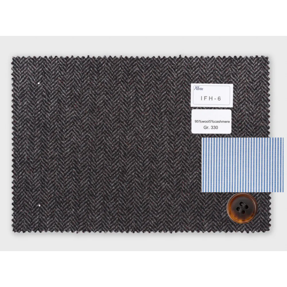 Micro Patterned, Herringbone and Fancy Wools {"Fabric": "95% Wool 5%Cashmere", "Season": "Winter", "Weight": "330gr/m2", "Code": "203", "Label": "Grey Melange Herringbone Wool Cashmere", "Price": "€525.00"} [stoffe203] x1 (525)