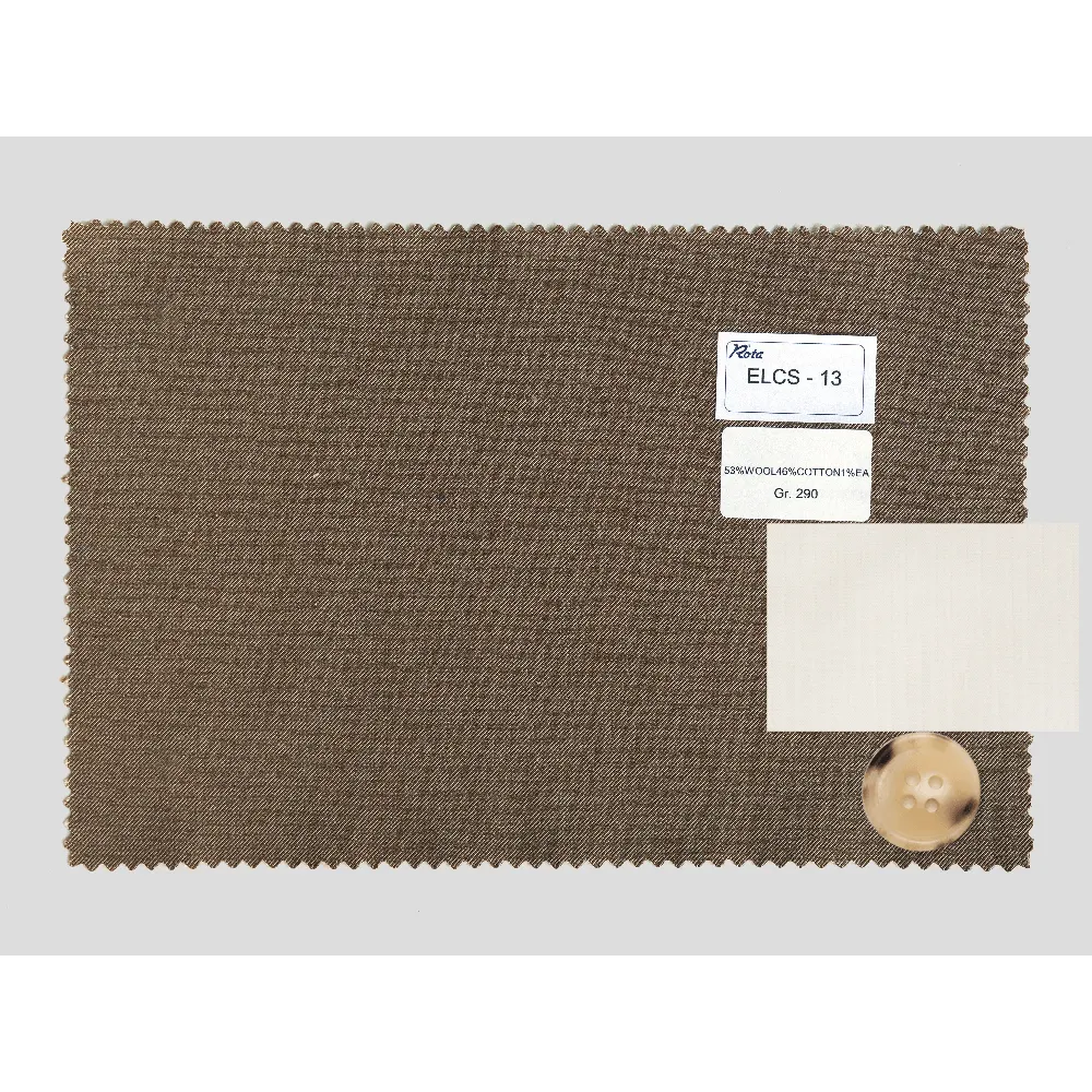 NEW Wool-Cotton Fabrics {"Fabric": "53%wool 46%cotton 1%elastan", "Season": "Summer", "Weight": "290gr/m2", "Code": "ELCS-13", "Label": "NEW Brown Wool Cotton Elastan", "Price": "€509.00"} [ELCS-13] x1 (509)