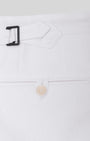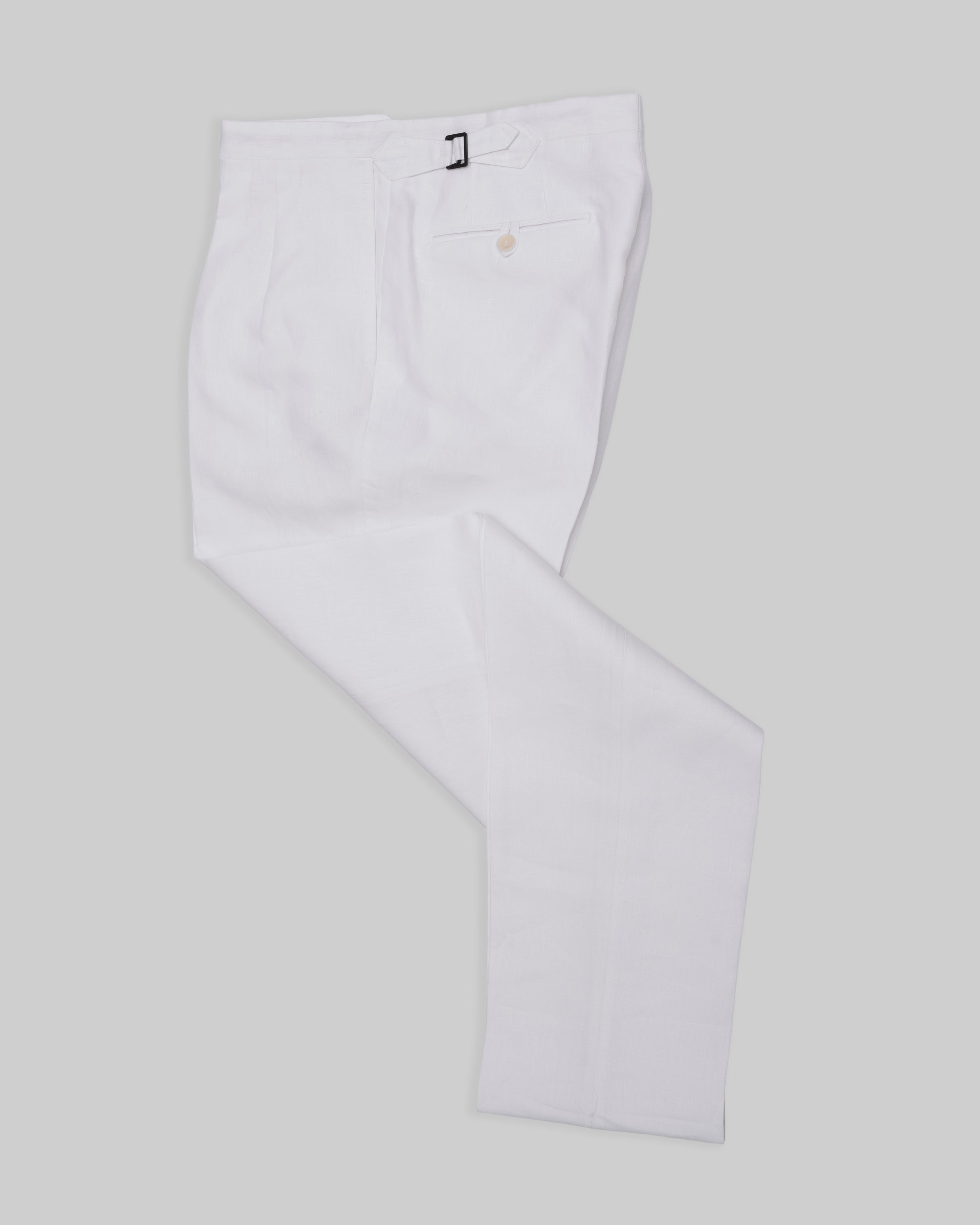 Channel your inner Jay Gatsby in our 'New York' trousers cut from a crisp white, Irish linen. Complete with double forward-facing pleats, our wider-cut 'comfort leg' and jaunty side adjusters, these trousers are perfect for hosting lavish soirees or completing daily Summer ensembles with aplomb.