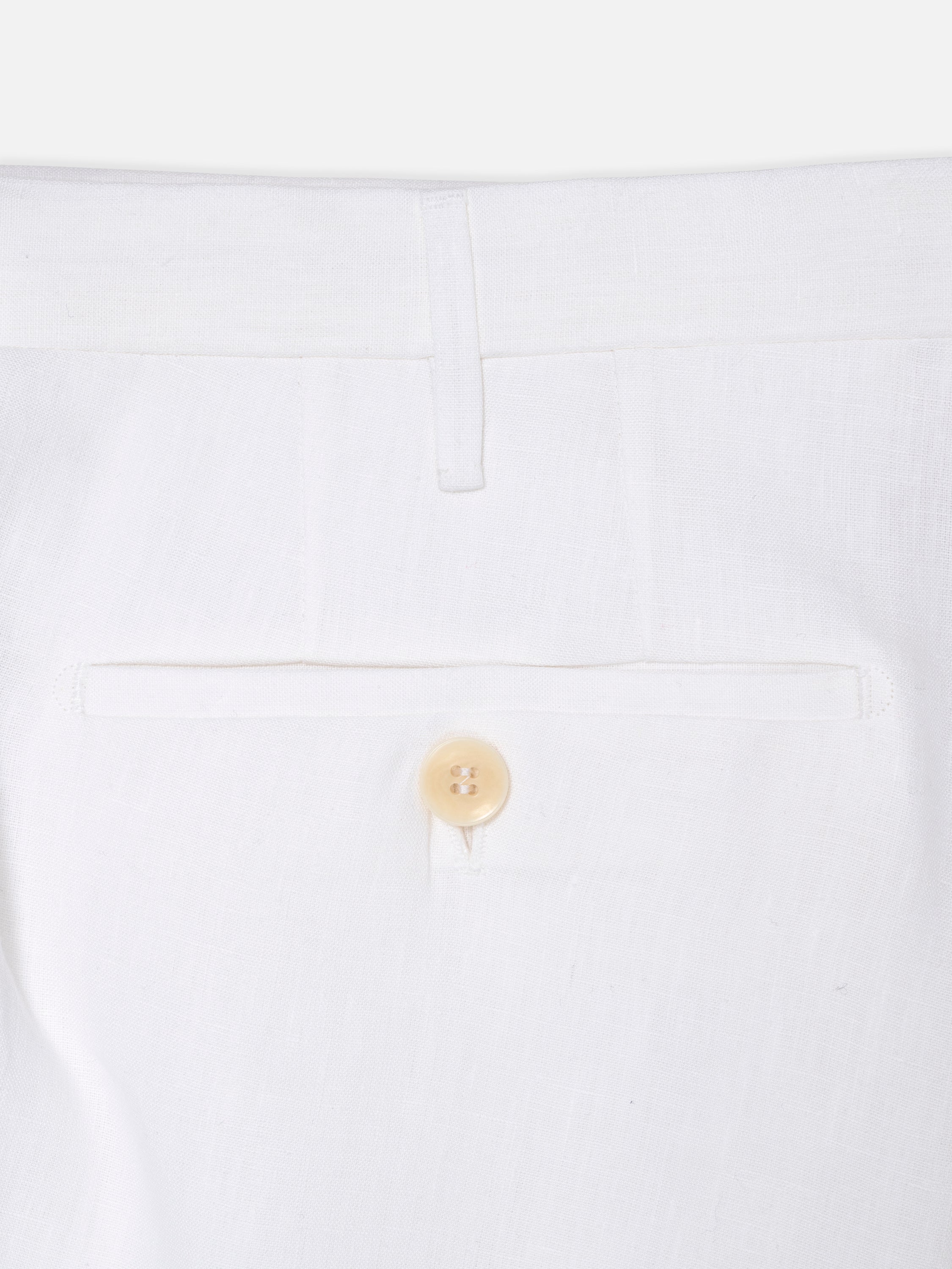 Versatile white trousers will fast become a key part of your core collection. This medium-rise regular-fitting flatfront pair has been made in Italy from Irish linen, the highest quality linen in the world.
